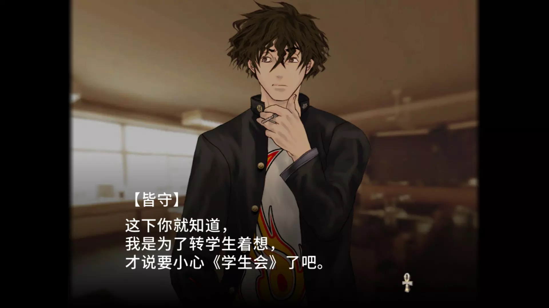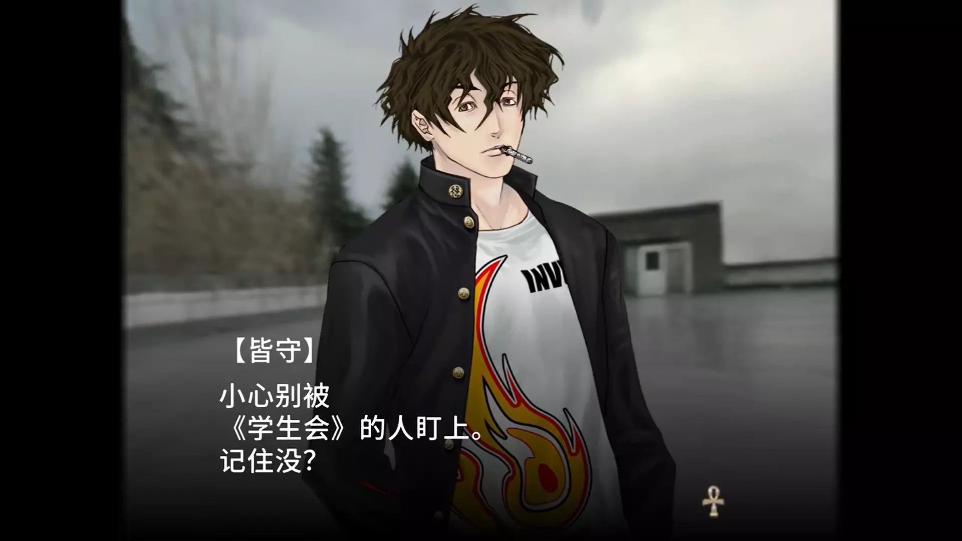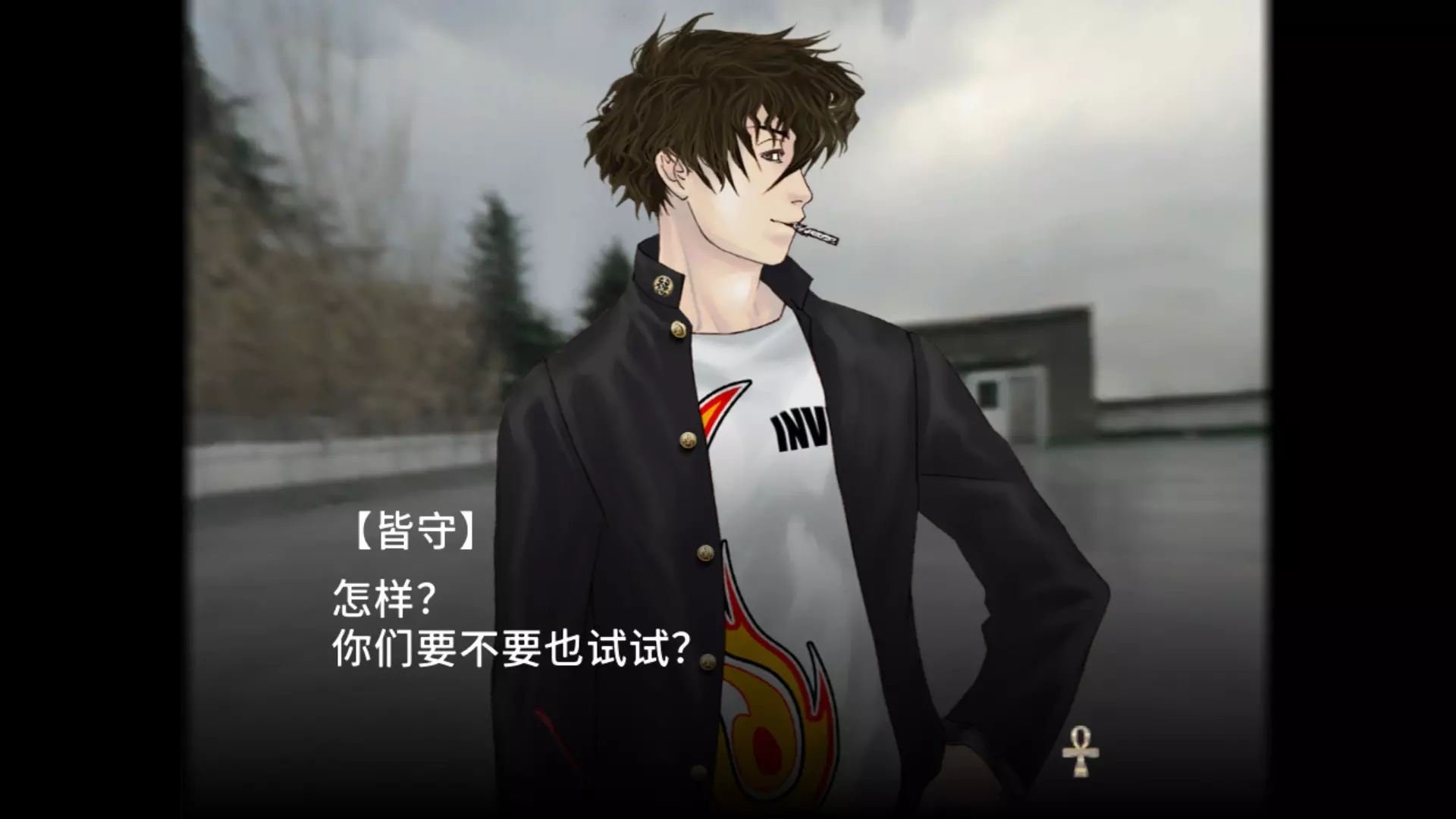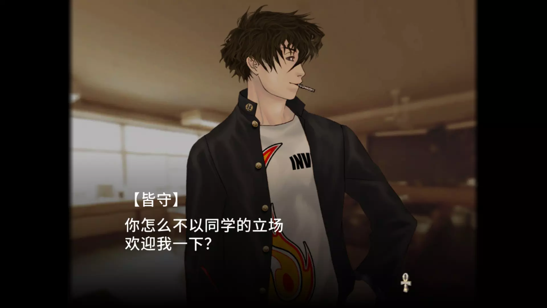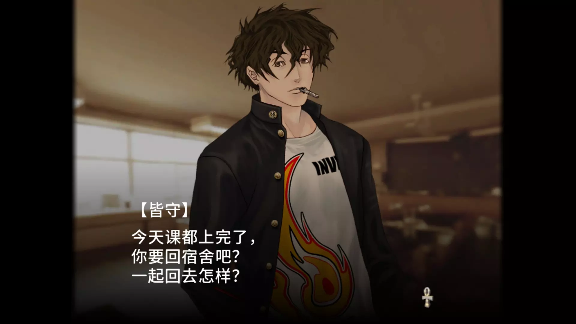又回到了化学课堂时间,1:1调配浓硝酸和浓盐酸可得到王水,王水可溶解黄金。 通过大门来到阿努比斯祭坛。 阿努比斯祭坛(解锁两个成就)下梯子遭遇战,远战开枪,近战用小刀,轻松通过。 来到地图X标记处,拿取宝藏触发首领战。 首领是一只小狗,它的眉心是其弱点所在,使用枪械攻击眉心可解锁成就【Dorchester Pot】。 如果你是普通难度或以下,加上萨拉会给你回血,可以非常轻松击败首领,解锁成就【Lake Winnipesaukee mystery stone】。 但是如果你是困难难度,首领一招就可以让你游戏结束,要十分小心,所以你需要一回合直接秒杀首领,直接扔三个手榴弹,然后开枪就可以过关了。1st Discovery 谜之转校生 恭喜你又成为了谜之转校生,似曾相识 这里就和女神异闻录系统差不多,虽然本作才是源头,为了要24个人都能成为队友就要选择后面提供的选项,有些选项确实直接看不是特别能理解,所以为了全收集还是很重要的,选择请务必保持一致。 然后要注意下,这类轮盘类的感情回答,回答最好快一点,超出一定时间就会消失,错失回答机会。 白天的人物对话选择 提问 回答/选择 备注