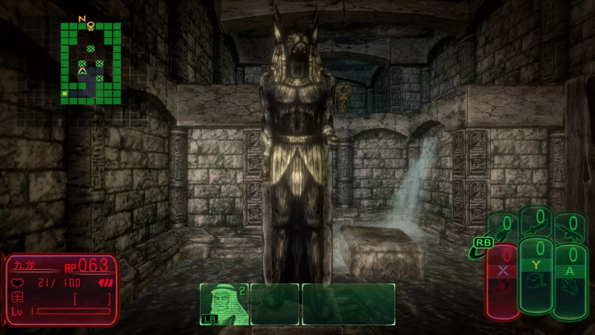可以看到狮子厅四角三个角都有石狮子,唯独西北角空有台子,只需打开地图上北边的宝箱,获得狮子(这时可解锁成就Piri Reis map),将狮子放在西北角空台上即可解锁东边大门,这时会触发战斗教程,这里千万别打怪,立刻逃向东边大门,被怪打两下问题不大,即使在困难难度扛两下还有血,只要不死问题不大,离开狮子厅,解锁成就Baghdad Battery。 来到了阿努比斯之门。 阿努比斯之门出门先看右边的石碑:
