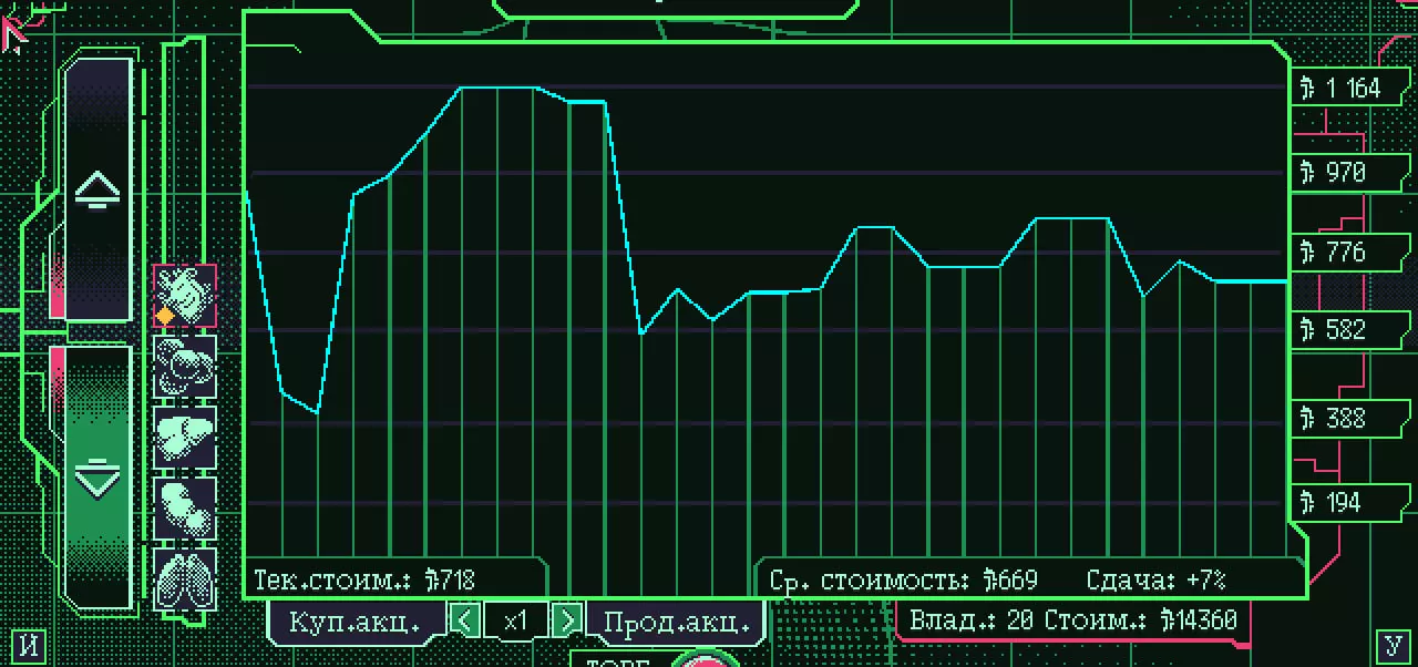 《太空军阀器官交易模拟》入门指南:器官编号解读及基础方向提示 本指南并非详尽攻略,也非结局指南。 基础玩法 游戏中有三种赚钱方式: 1. 购买器官,待其价格高于买入价时从货舱出售 2. 完成委托订单 3. 进行市场交易 下面我将逐一介绍这些内容,并分享一些个人发现。 直接买卖器官 前期游戏中,这种方式的重要性较低。到了游戏后期,你将接触到价格波动更大的器官、更大容量的货舱,以及拥有更多价格影响能力的器官。如果你不慎购入了多余的器官,或是库存中器官价格上涨,出售它们仍然是个不错的选择(这种情况很常见)。游戏确实会显示你的购买价格,这一点很有用,不过有时候为了腾出库存空间而快速出售,比那点微薄的收益更有价值。 完成委托 这是游戏中最重要的方面之一。门陶尔·明特对此解释得不太清楚,但如果委托的报酬低于购买成本,确实有可能会亏损。委托是游戏剧情推进的方式,不过这里我就不展开细说了。在大多数情况下,快速接受委托并尽快完成是一个不错的初期策略,这也能提升声望。 市场 这似乎是获取现金的最大途径,尽管可能会有点慢。先存些钱,等待大型器官运输导致某类器官价格暴跌,然后把所有钱都投进去,等价格回升。就算只是等价格恢复正常而非上涨,也能带来巨额利润。 条形码速查表 游戏开始时,门塔乌尔·明特会提供购买他的条形码指南的选项。在快节奏的游戏环境中,很难记录和记住这些信息,所以我在此整理了一份。目前游戏内没有回看该指南的方法,除非重新开始新游戏。器官条形码示例#02C-50(A-)-1-0 各部分解析: #02 = 市场编号,代表器官类型 C = 器官尺寸 -50 = 状态 (A-) = 血型 -1 = 稀有度 -0 = 肉类/特殊 根据以下表格,该器官信息如下: 肝脏 尺寸:小 状态:50 血型:A阴性 稀有度:粗糙 属性:肉类 市场编号(将随遇到的情况补充并重新排序) 名称 编号 心脏 #00 大肠 #12 膀胱 #17 Excormex #01 眼睛 #10 喉 #07 肾脏 #03 脾脏 #09 肺 #04 大脑 #05 灵魂 #16 胃 #15 Rotcane #25 肝脏 #02 神经簇 #14 Shiftwux #26 胆囊 #06 尺寸 字母 尺寸 D 微小 C 小 B 中等 A 大 S 巨大 稀有度 数字 稀有度 1 粗糙 2 普通 3 珍贵 4 稀有 5 传说 特殊性 0 肉类 1 特殊