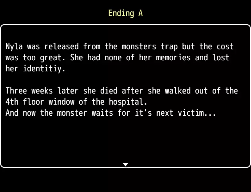结局B 达成此结局需确保未从上层花园的仙子处获得【沉睡者钥匙】。回答所有问题错误即可触发该结局。