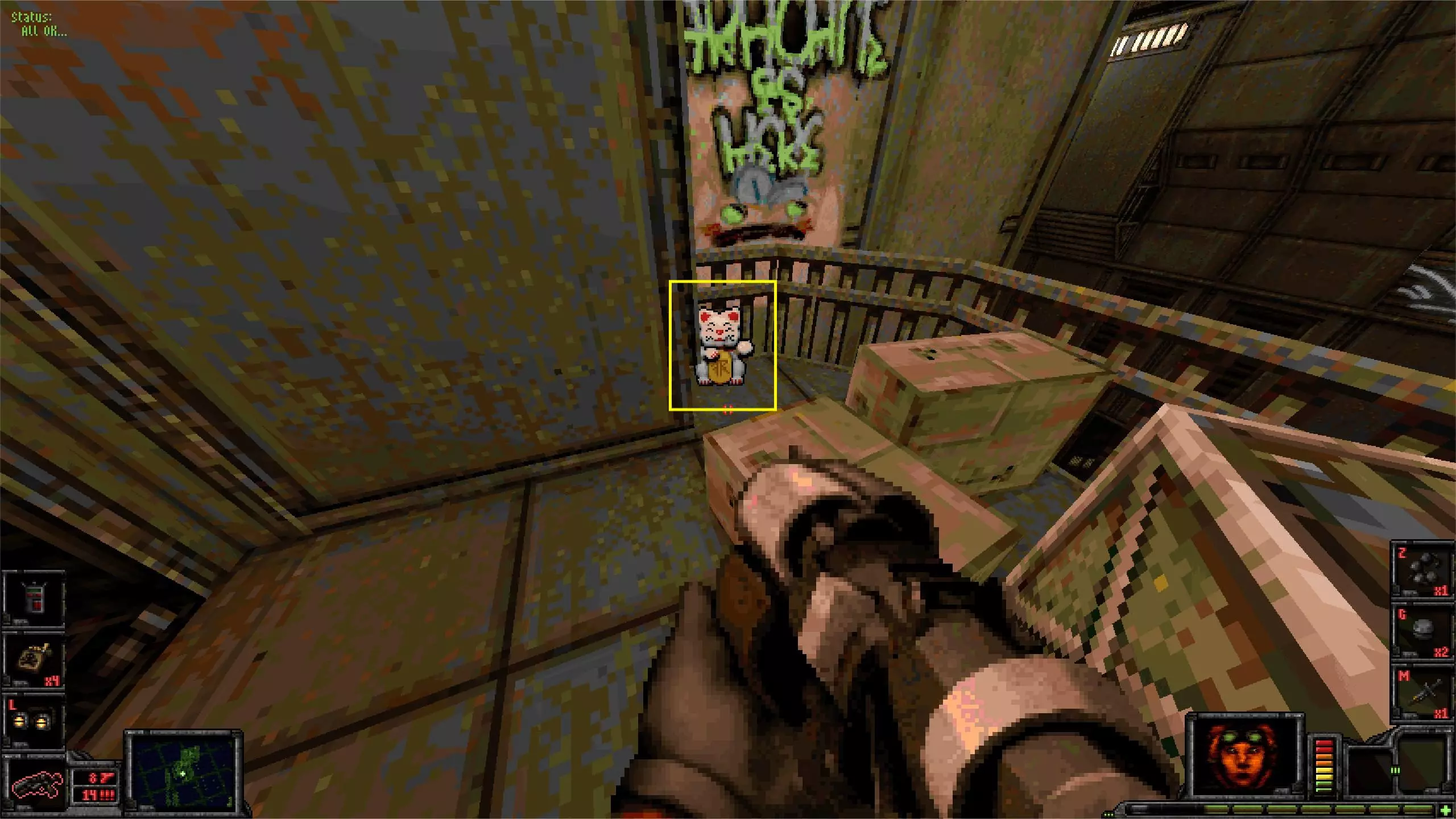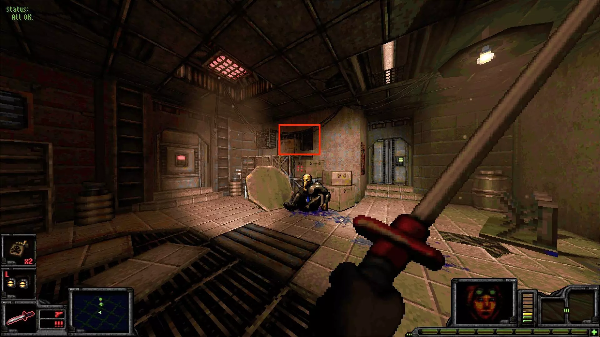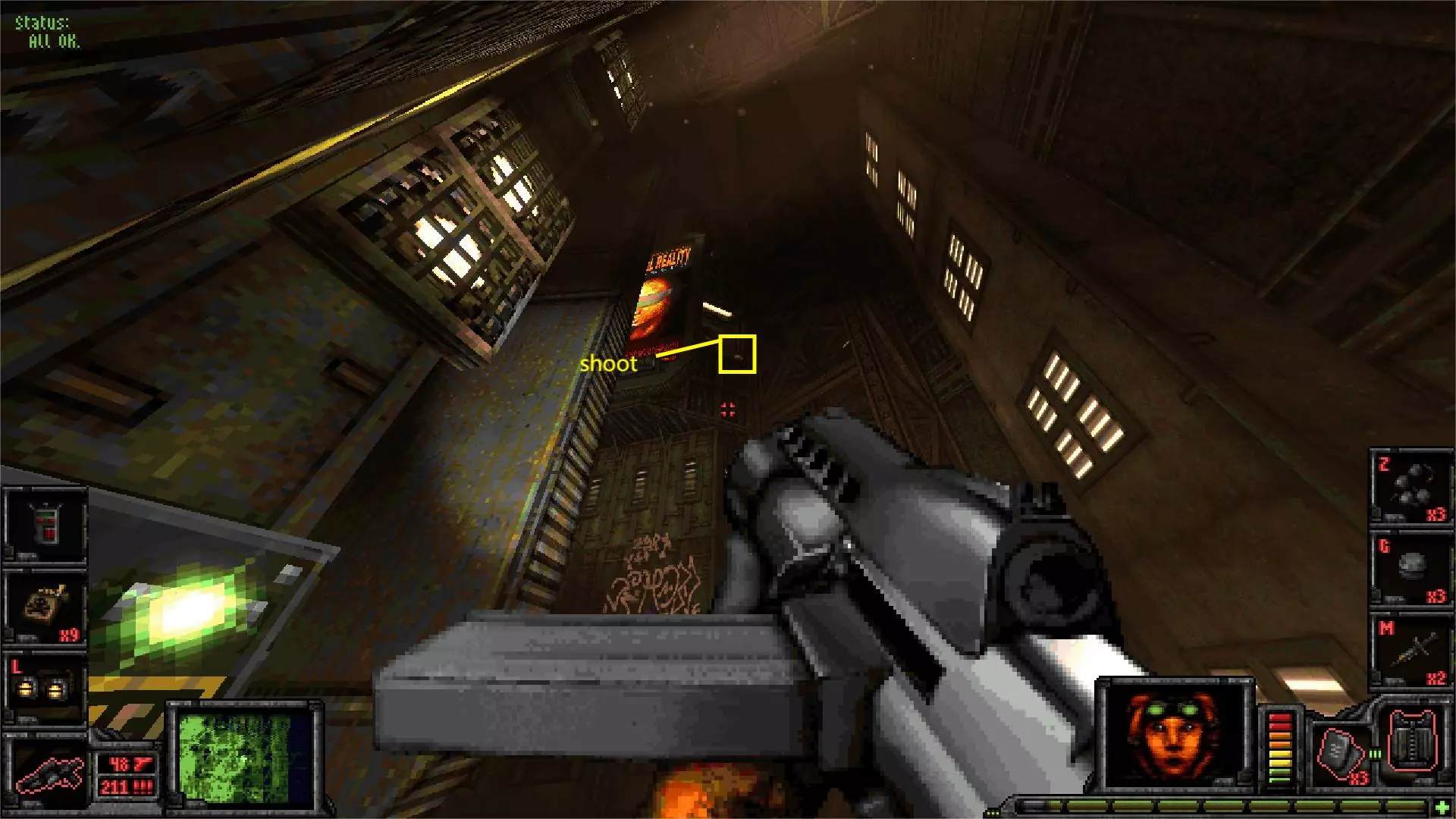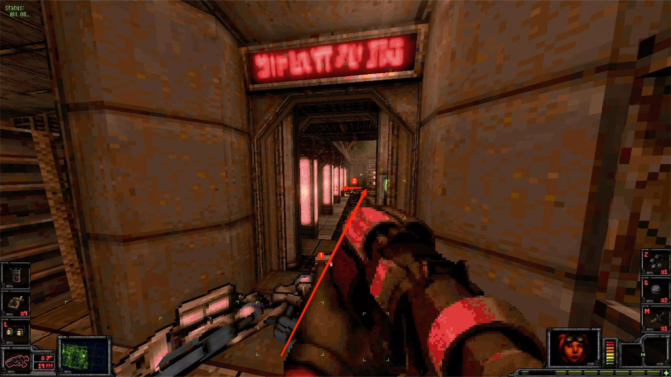 外部区域A [5/11] 楼梯 在此处你会受到飞艇的攻击。从缝隙向外看,它在最右侧。跟着箭头指示就能找到它。 你可以直接向其射击,如果你擅长跑酷,也可以从它上方直接过去。那里有一些补给品。