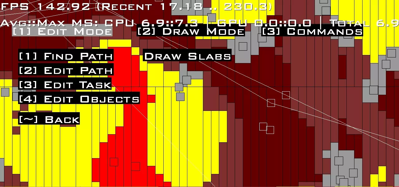 我在路径编辑器中只使用两个功能: 查找路径 查找路径功能可让你规划AI从A点到B点的行动路线,这对于快速测试地形寻路非常有用。 编辑路径 编辑路径功能允许你选择点来设置路径。你可以通过点击现有路径,然后在其他位置点击以添加额外的路径点。右键点击可取消选择路径。 要创建新路径,请确保未选择任何路径,点击地图,你会看到一个方形路径标记被创建,然后在左下角编辑你的路径名称。 编辑器还会根据你的光标位置或地图上的位置显示有用的坐标信息。