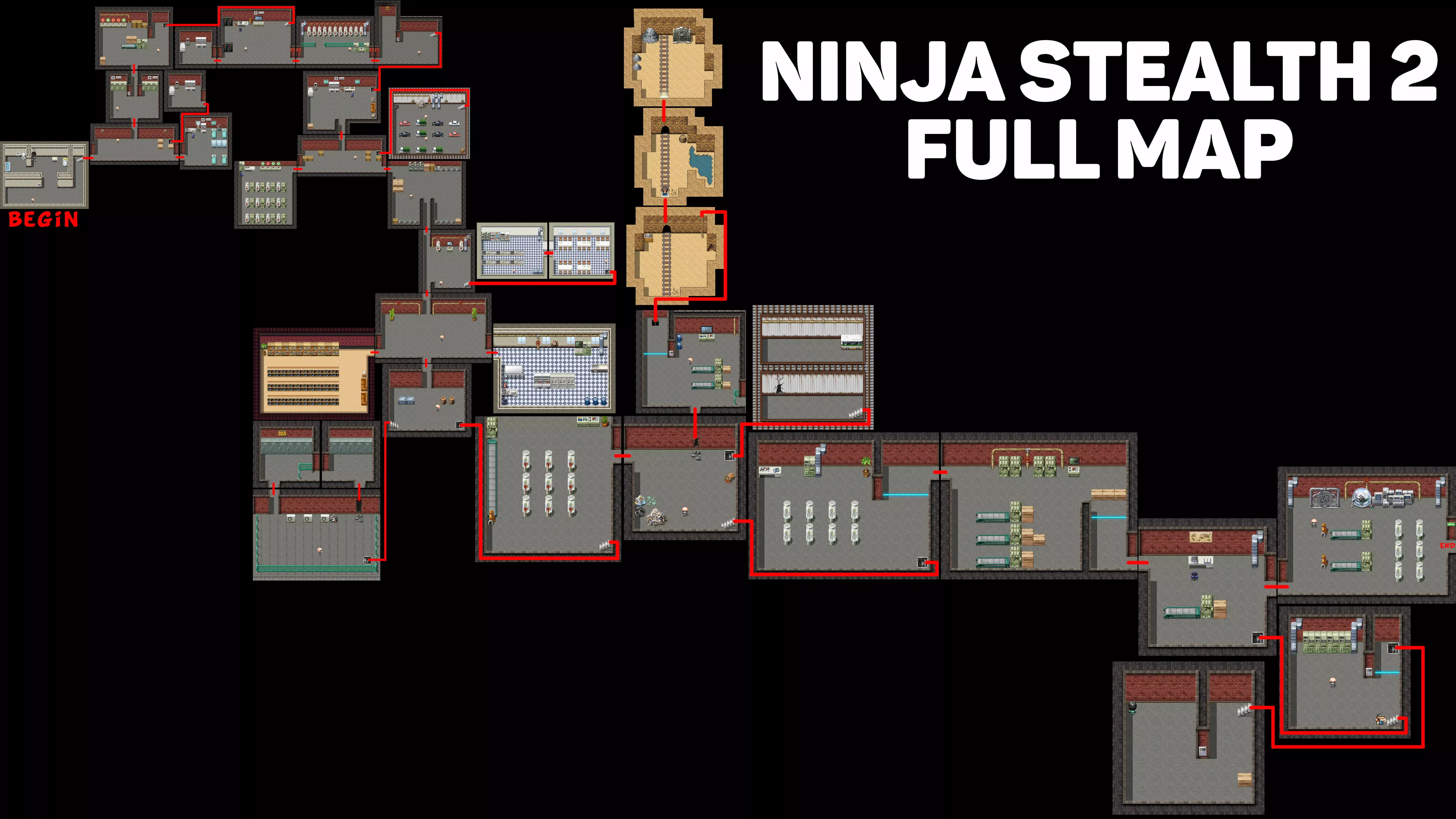 《忍者潜行2》全地图 这是《忍者潜行2》游戏的完整地图,包含从起点到终点的所有路径。(目的是避免在游戏中迷路!)