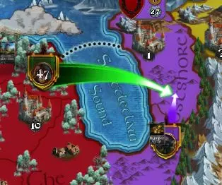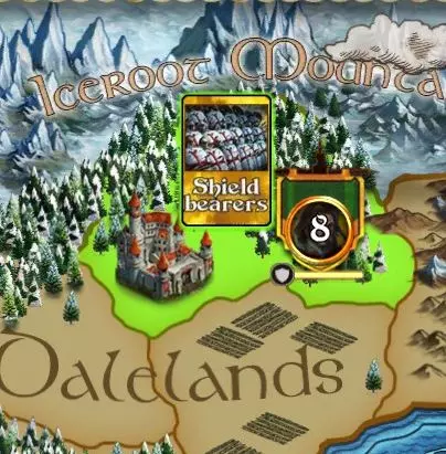 6. 唤醒你的初始英雄,该英雄将出现在你的初始城市中。只要拥有足够的资源,你可以随时选择一个或多个英雄进行唤醒。如果你的英雄在战斗中阵亡,需要等待若干回合才能再次召唤他们。你只能在自己拥有的城市中唤醒英雄。领土颜色会显示哪名玩家拥有该土地。