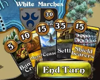 使用卡牌时,只需点击或轻触并将其拖动到你想要使用的领土上。所有卡牌在使用前都需要消耗金币。