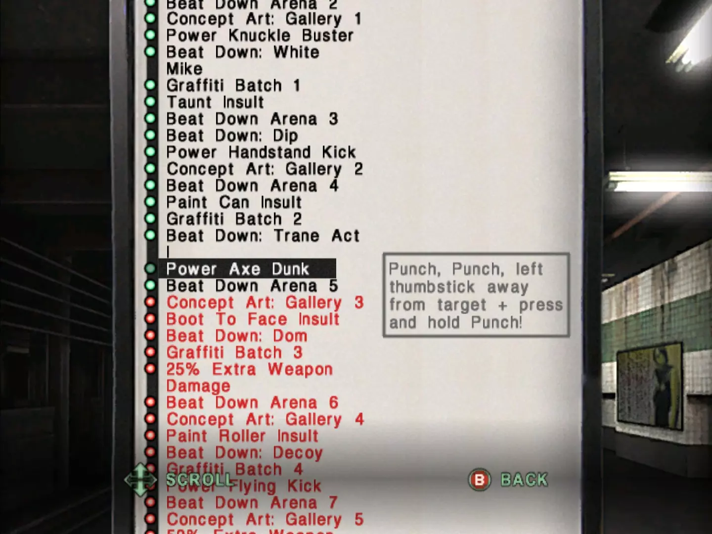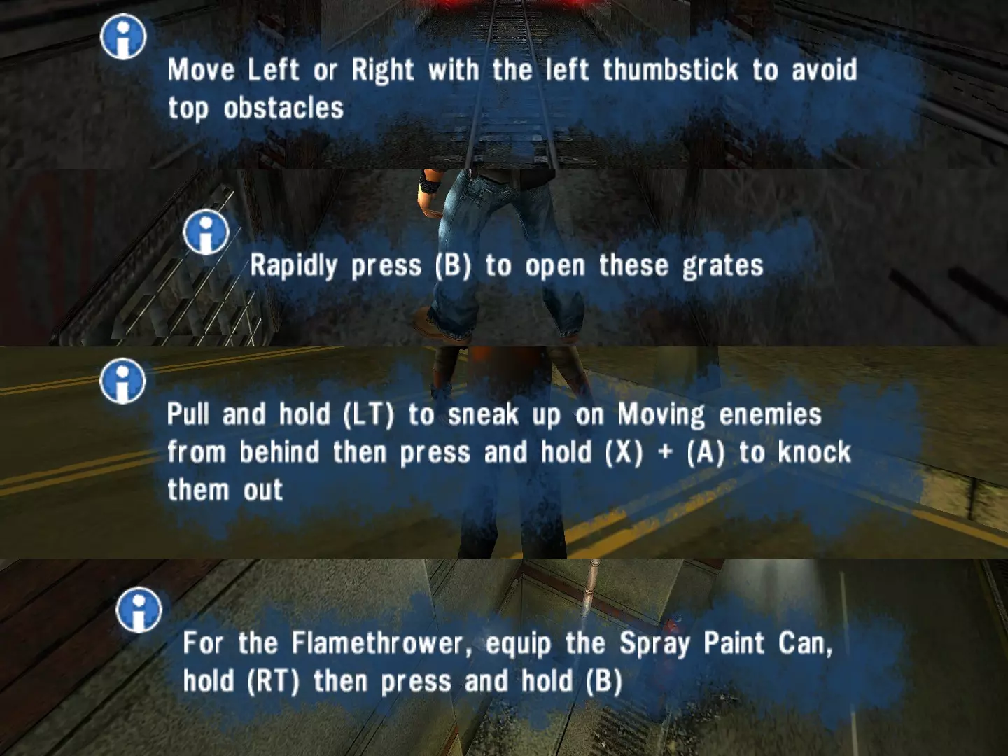 已预先配置正确的控制器按键绑定,并替换了控制器按钮提示和图标。 原因: 此处分享的其他控制器配置存在部分按键错乱或无法使用的问题,且完全没有解决键盘鼠标图标和按钮提示的方案,因此为你提供这款简单的“一体式控制器模组”。 下载: 基础模组:《Marc Ecko's Getting Up: Contents Under Pressure》Xbox控制器模组v1.0——包含修改后的按键绑定,适用于Xbox 360控制器及XInput封装程序 《Marc Ecko's Getting Up: Contents Under Pressure》Xbox控制器模组v1.0-altcom] – 包含未修改的按键绑定;适用于部分Xbox One/Series手柄因映射问题而无法与常规版本兼容的设备设置 ※ 如果你通过Steam Input对控制器进行XInput封装(或者可能为原生XInput控制器启用了Steam Input),我不太确定应该选择哪个版本,但建议先尝试替代版本。 必备补充:务必同时安装由misticjoker提供的修复补丁!该补丁将使用文本字符表示的按钮提示(即(A)、(B)、(X)、(Y)等,如下面截图所示)替换为实际的Xbox图标,并恢复设置菜单中原版Xbox的控制界面。DualShock版本:另有由ARTONE1922制作的DualShock 4控制器模组(英语/俄语),以及包含其他语言(法语/德语/意大利语/西班牙语/日语/巴西葡萄牙语)的版本,还有misticjoker制作的通用附录,这些模组在游戏过程中会显示实际的PlayStation图标,并从一开始就恢复了PS2的控制界面。 安装方法:只需将模组压缩包中包含的文件覆盖到游戏目录中。 ※你可以通过在Steam库中右键点击游戏,然后选择【管理】->【浏览本地文件】来找到游戏的安装目录。 展示内容:UI按钮图像和控制界面。