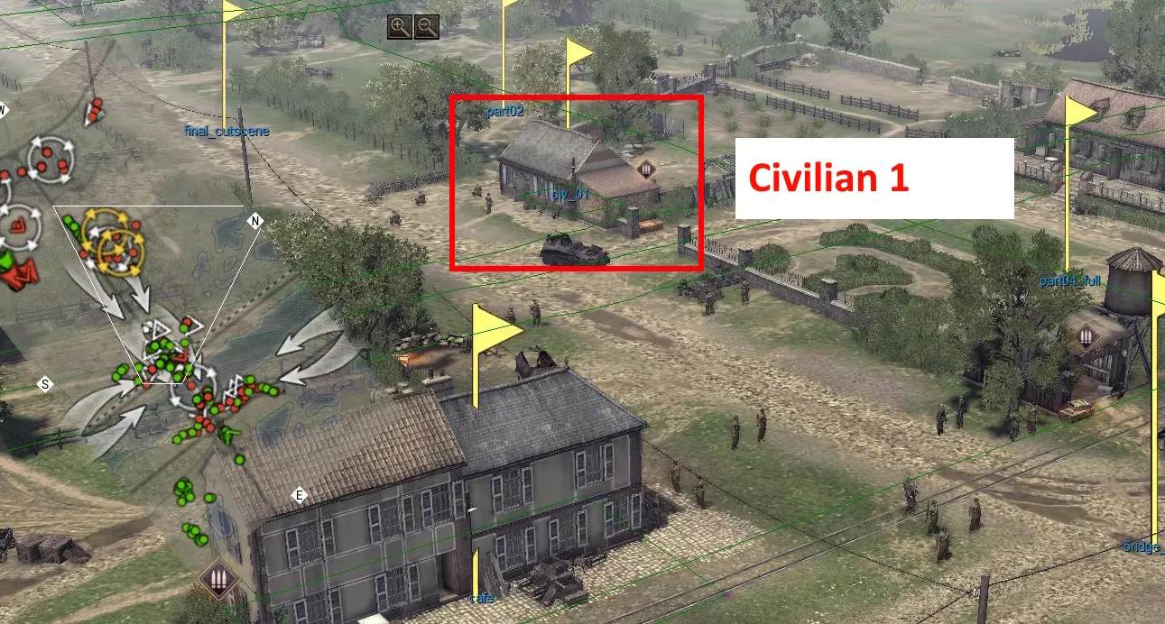 大胡子男人 “请求平民协助”。你需要依次与两名平民会面,之后最后一名平民会带你前往敌方补给卡车。会面和触发过场动画前,最好清理一下周围的区域(我只没有清理高射炮附近的区域)。在会议和过场动画开始前,最好清理一下周边区域(我只留下了高射炮附近的区域未清理)。