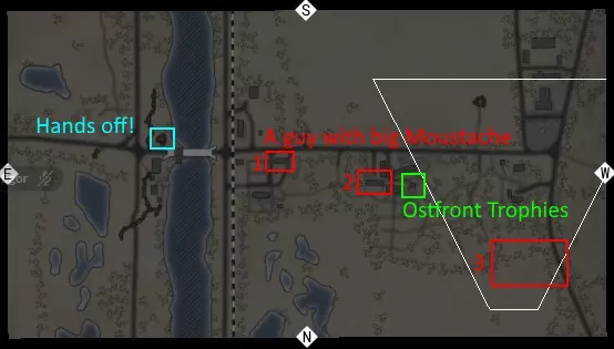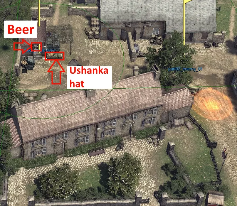 东线战场成就 【头戴护耳帽并手持啤酒箱】:在某栋建筑内有两个啤酒箱,旁边的箱子里放着一顶护耳帽。需要拿起护耳帽,在物品栏中戴上帽子,然后拿起啤酒箱。 【头戴护耳帽并手持啤酒箱】:在某栋建筑内有两个啤酒箱,旁边的箱子里放着一顶护耳帽。需要拿起护耳帽,在物品栏中戴上帽子,然后拿起啤酒箱。 火炮乘员组: 火炮乘员组: