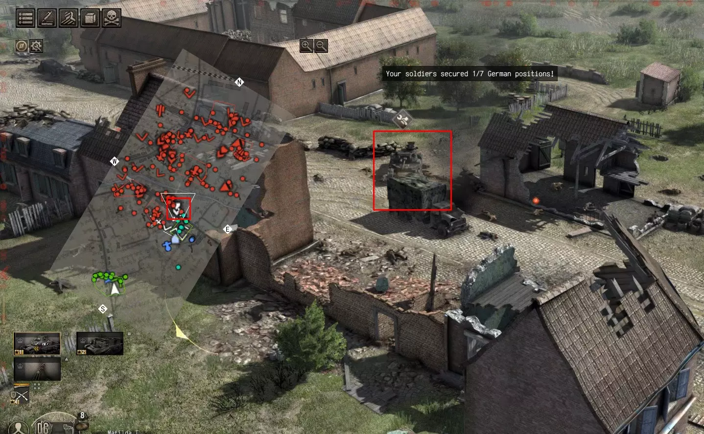 【Vice Grip Recovery】 “找到并修复了‘玛蒂尔达’坦克。这是在车队遇袭时丢失的。”任务开始一段时间后,会出现玛蒂尔达坦克被击瘫的过场动画。我们需要修复它并让乘员进入坦克。 “回收了在车队遇袭中丢失的玛蒂尔达坦克。”任务开始一段时间后,会出现玛蒂尔达坦克被击瘫的过场动画。我们需要修复它并让乘员进入坦克。 玛蒂尔达的位置: