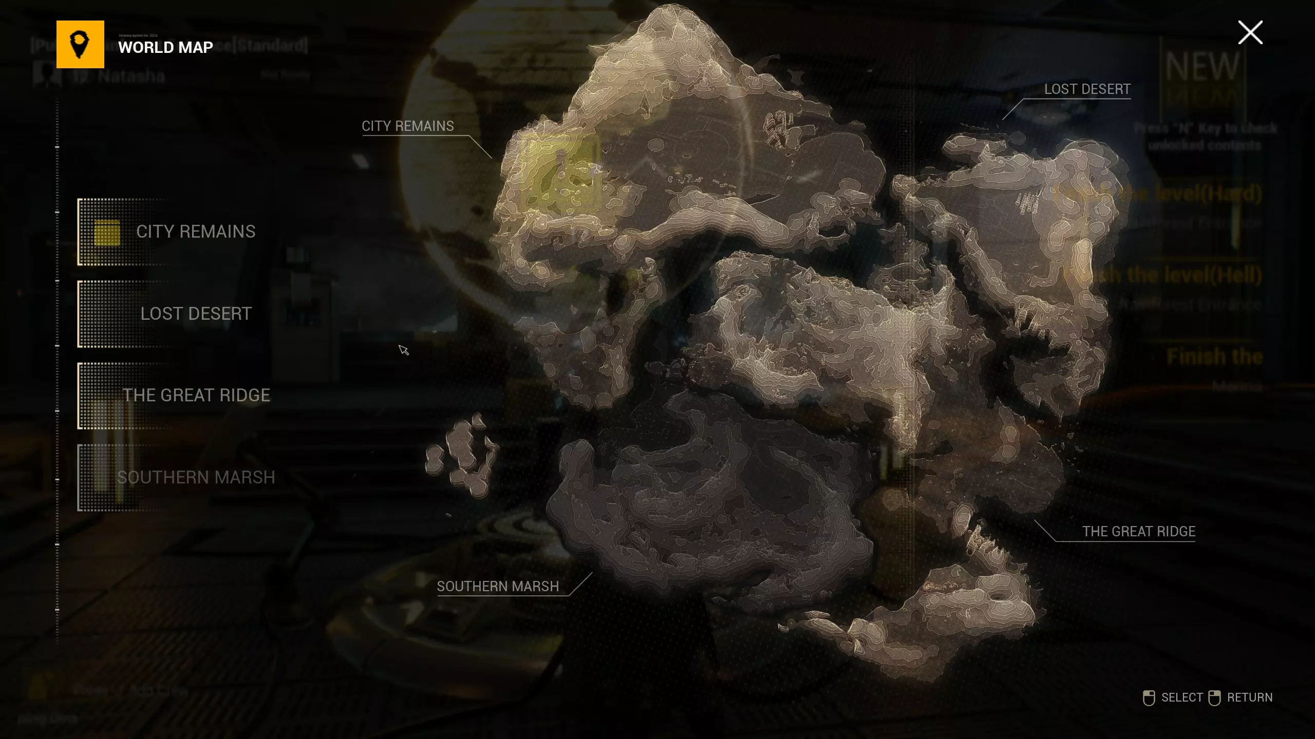 从这里你可以选择不同的区域、其他任务,并解锁更多内容。现在尽情探索吧。