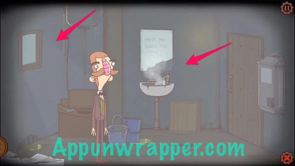 房间里会充满水汽,点击镜子,出现一条信息:“苹果树下见。” 离开浴室。