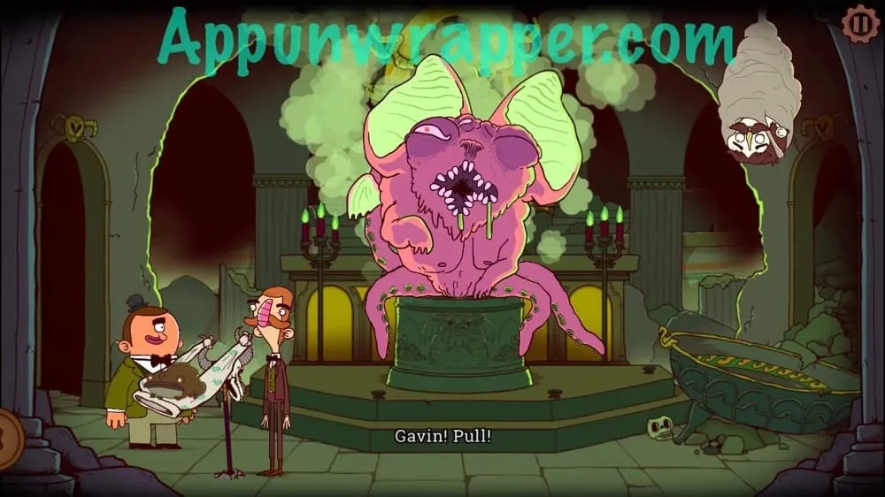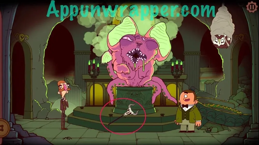 你会发现传送门已经打开,一只奇怪的蝙蝠鱿鱼状生物(章鱼蝙蝠?)正要吃掉斯卡特沃斯。