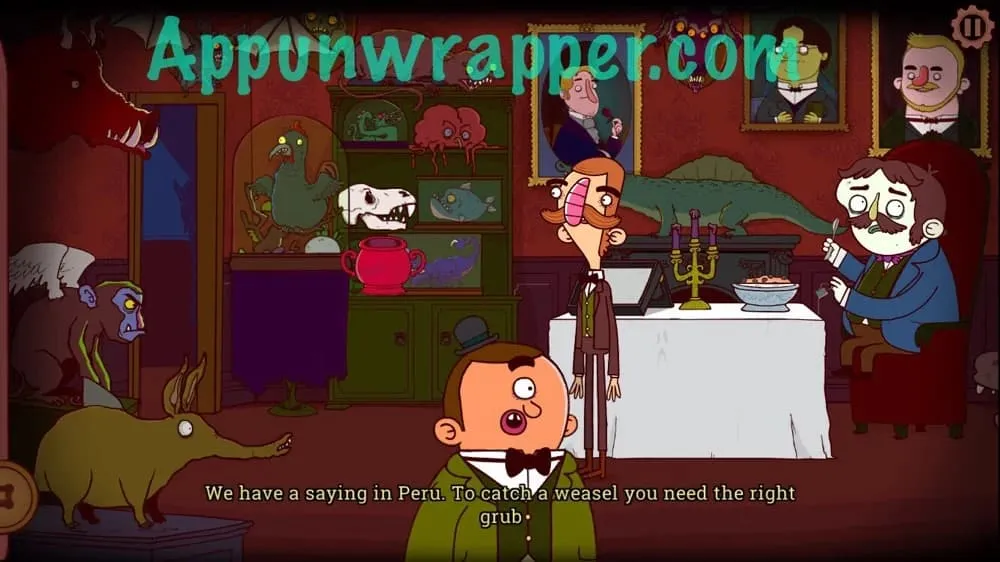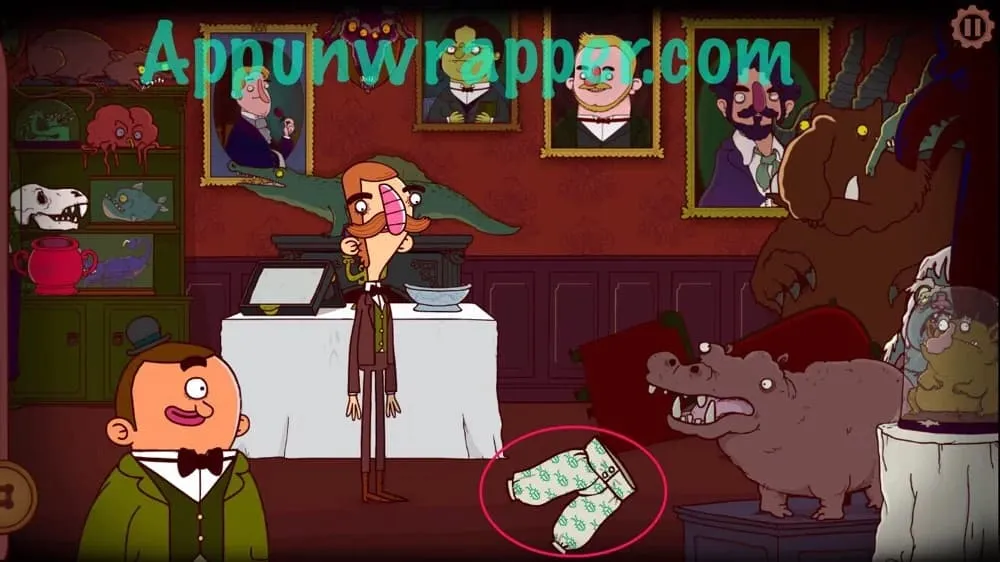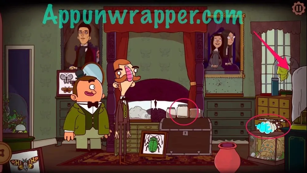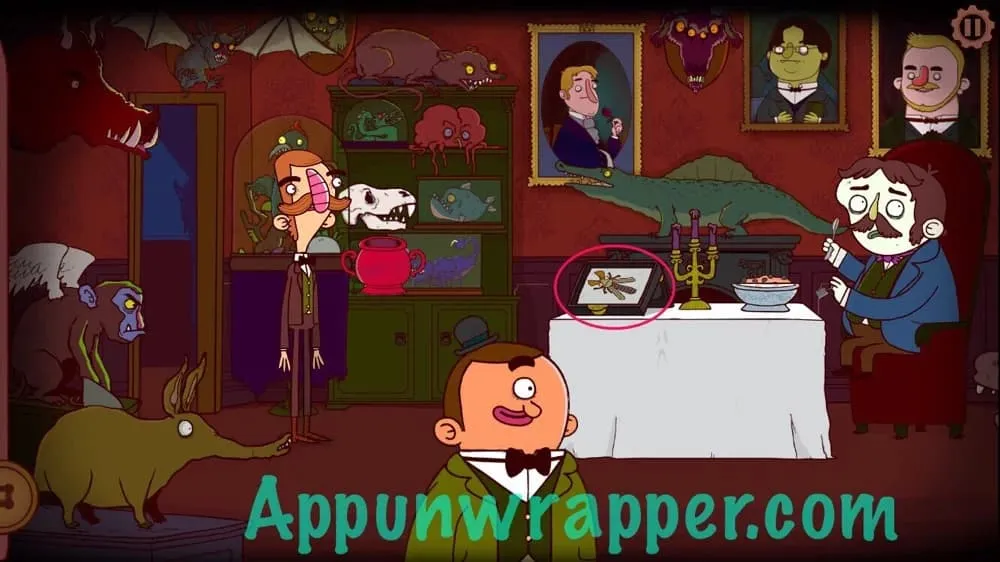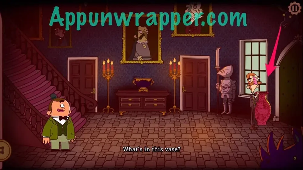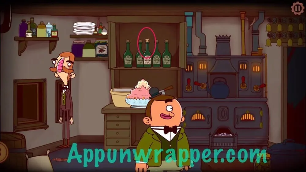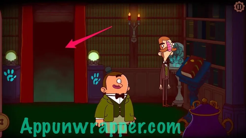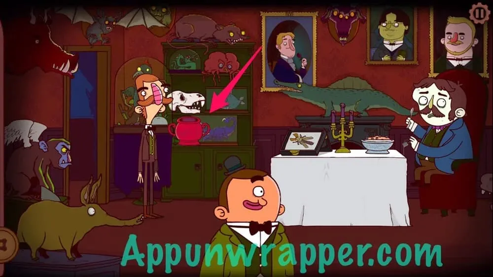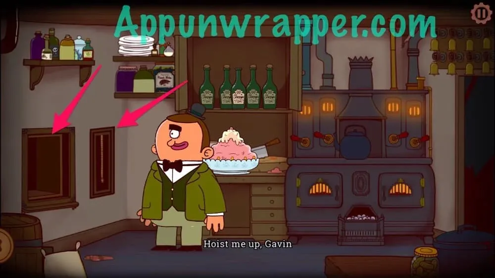 8. 离开房间,点击屏幕左侧前往厨房,你会发现雷特利勋爵正用假侍者把食物送到阁楼,给某人……或者什么东西送餐。