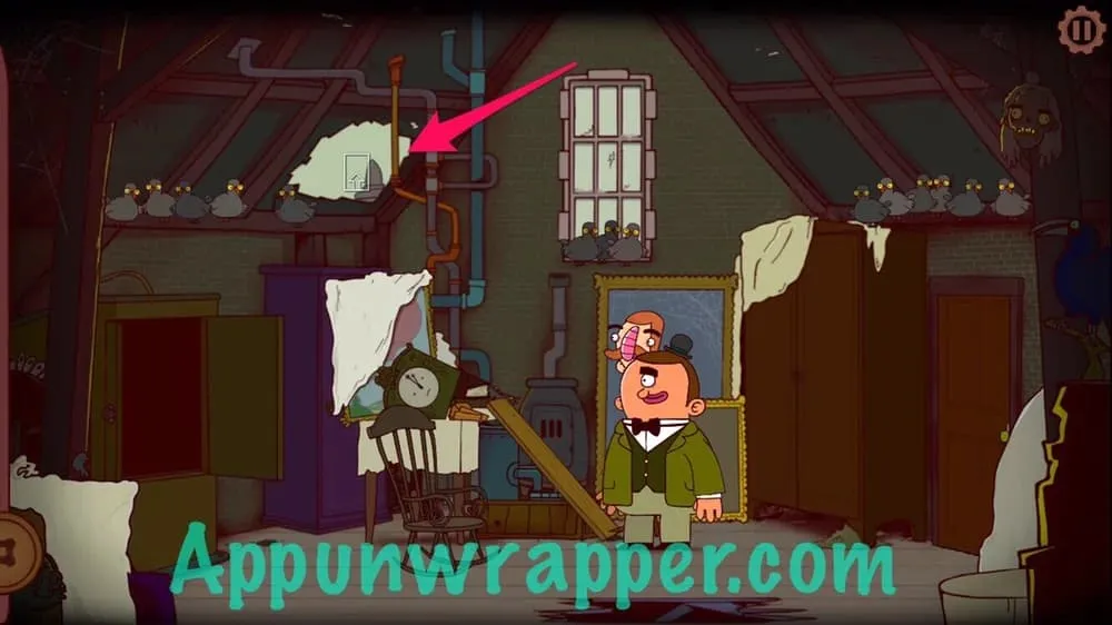 点击左边的画,即可发现通往阁楼的秘密通道。