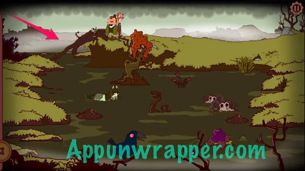 17. 向左走。让加文把老树推倒,这样你就可以用它来搭桥。然后返回村庄。