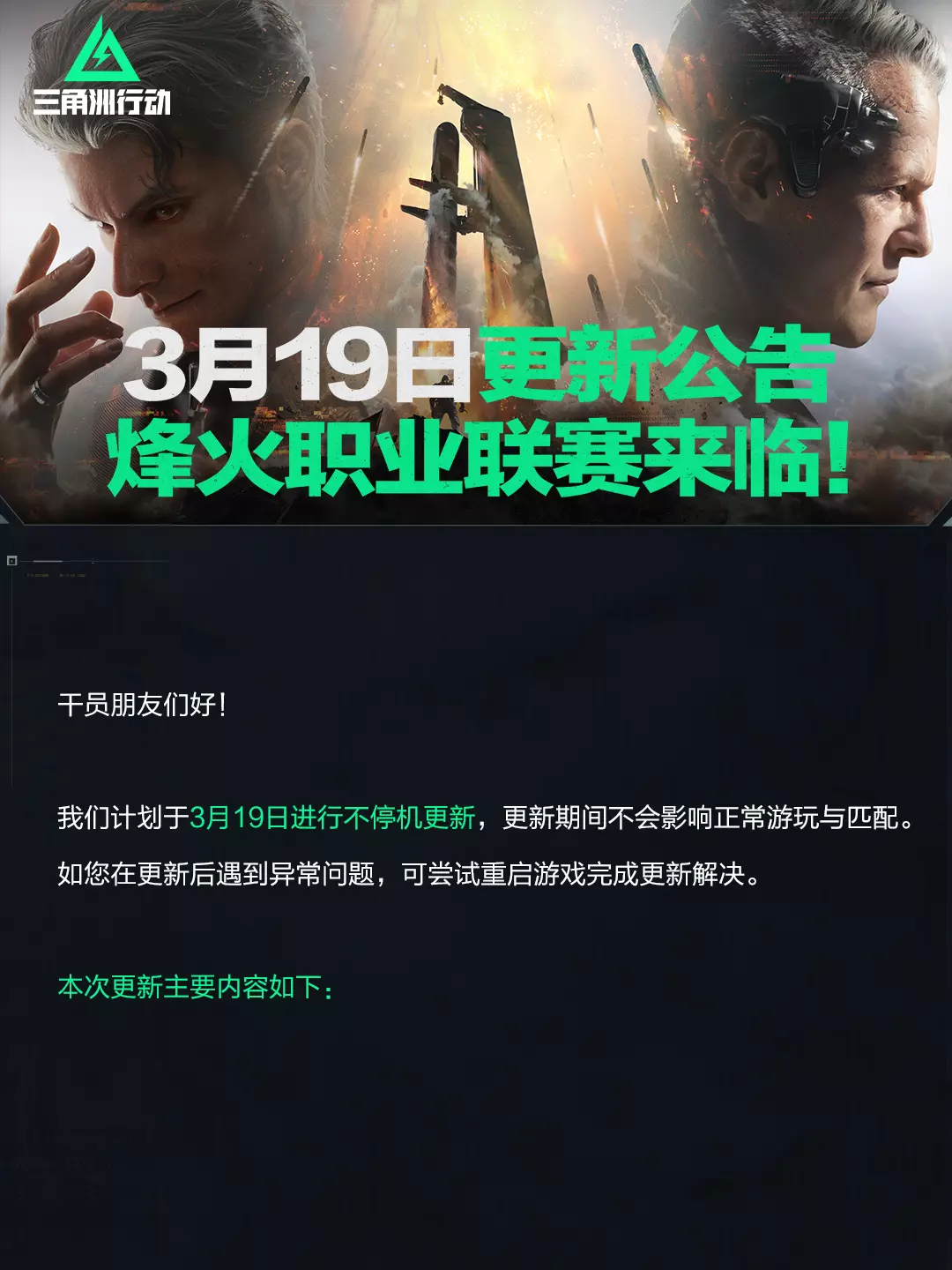 3月19日更新公告丨烽火职业联赛来临!