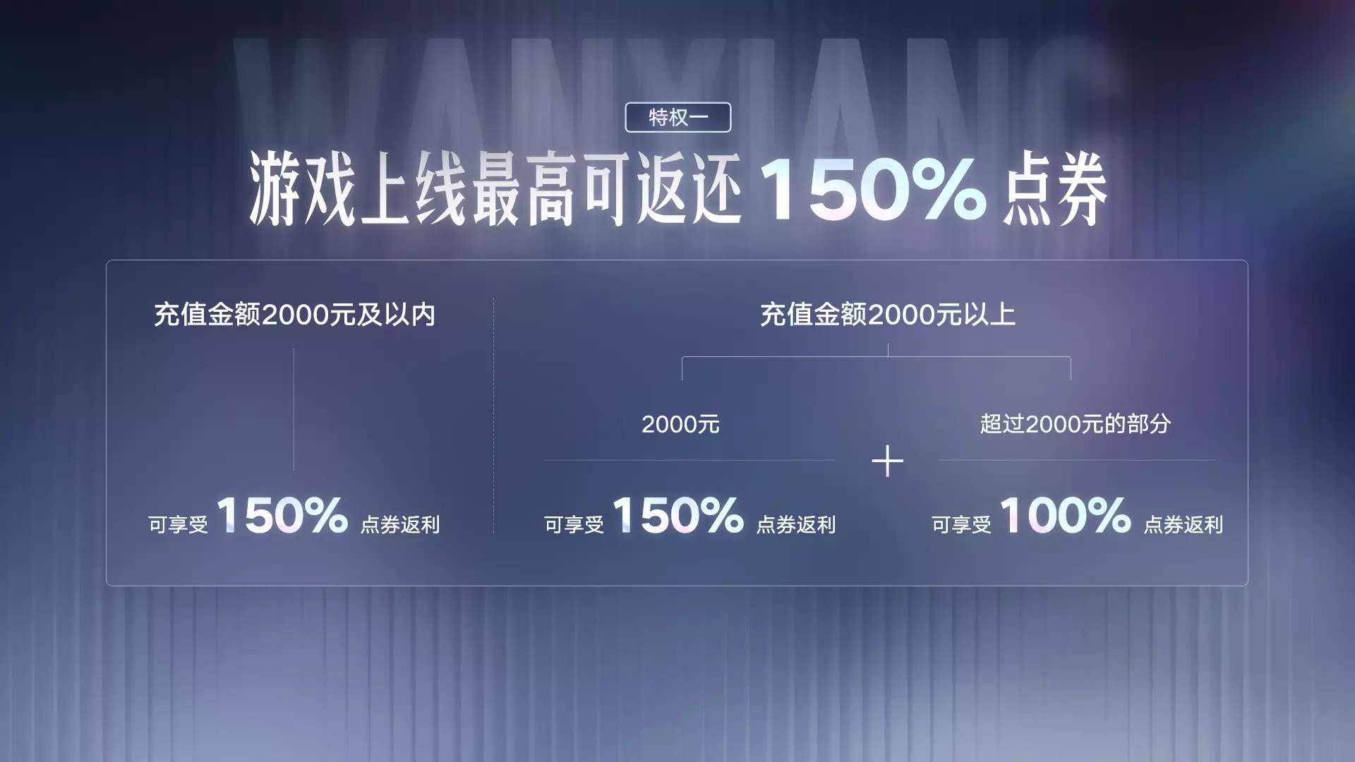 充值2000元及以内,游戏上线最高可返还150%点券;