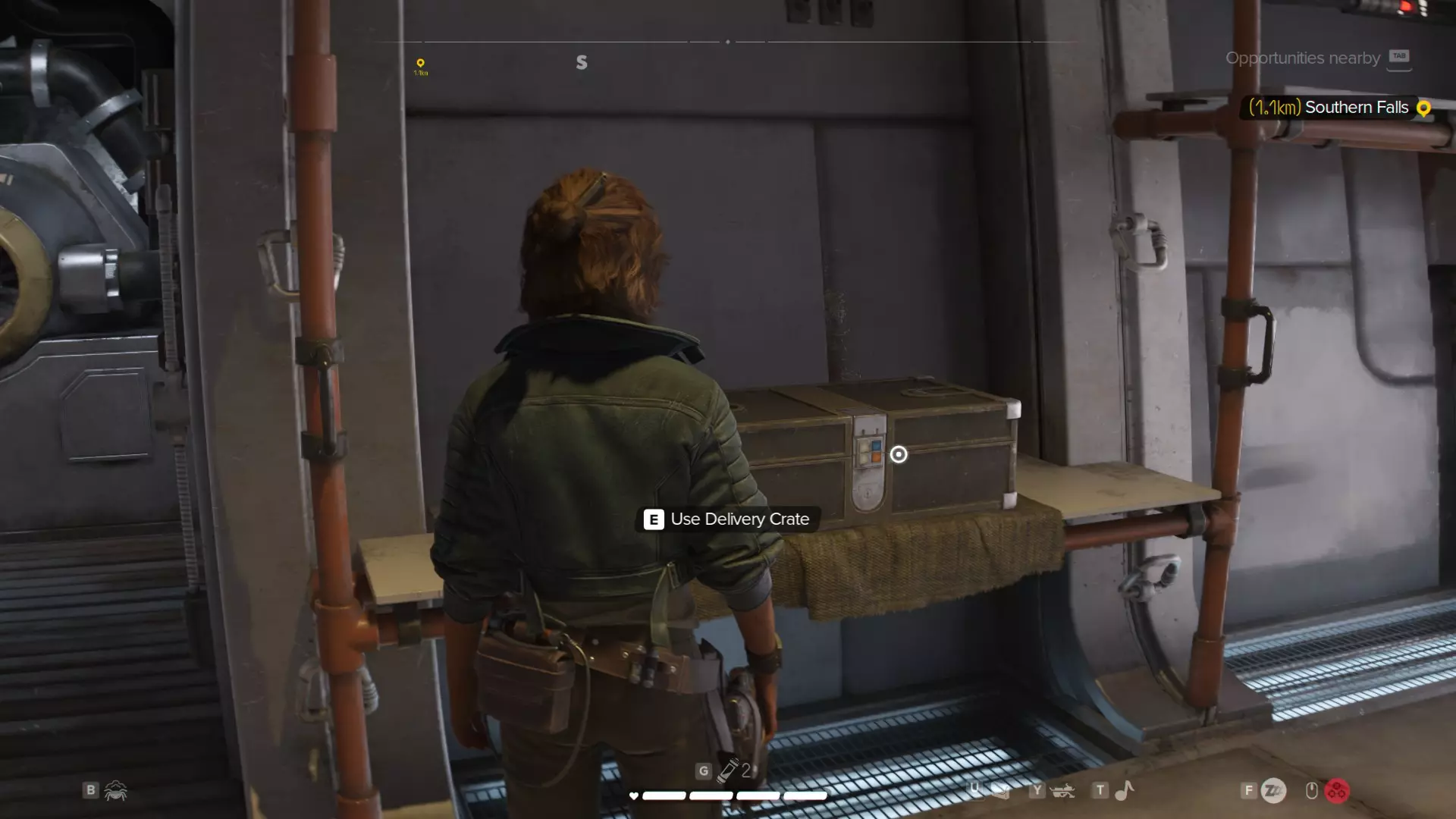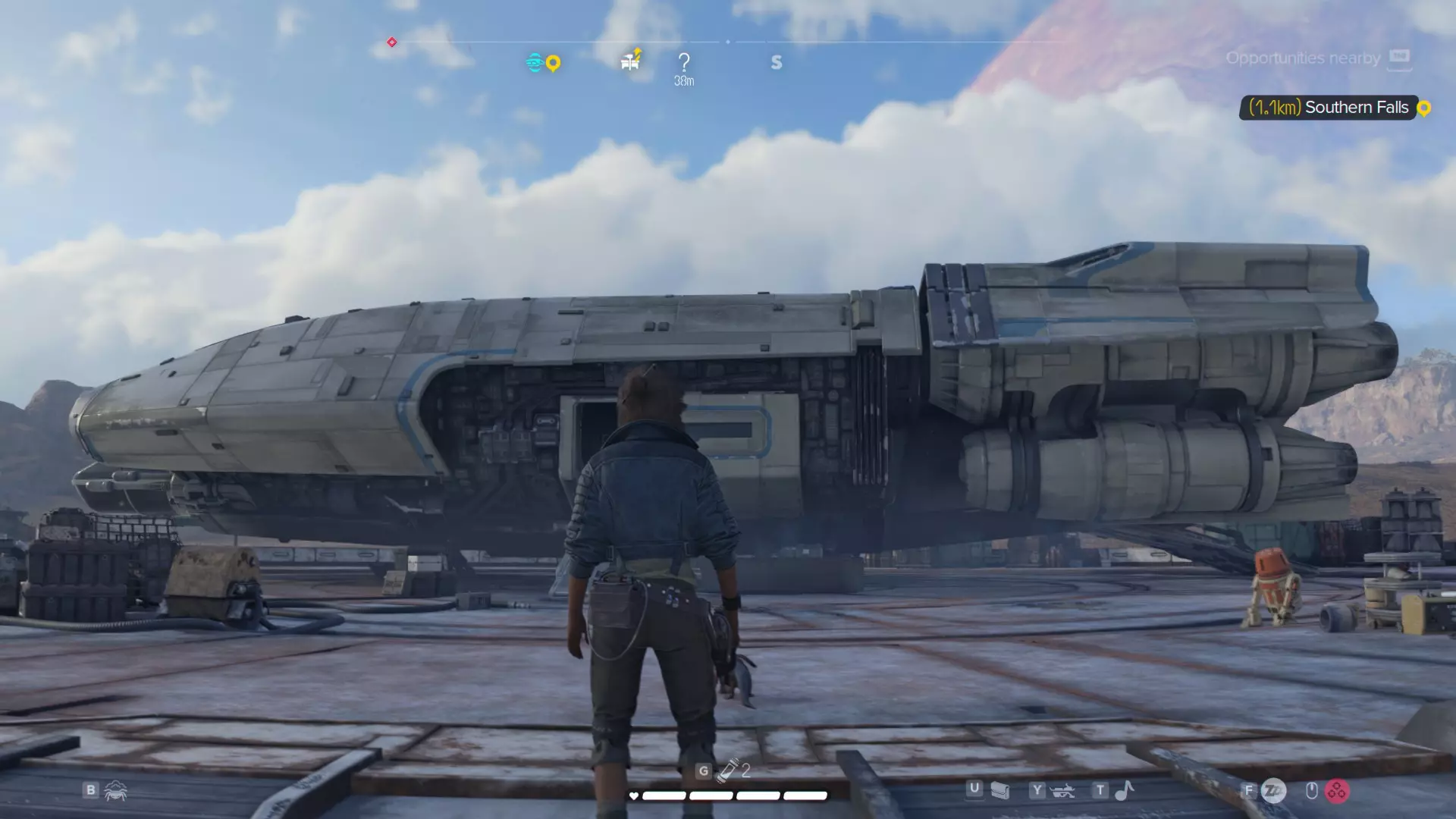 打开游戏可领取免费的星球大战:骷髅船员外观包,该包包含飞行器装饰、车把挂饰和同伴发型,可前往开拓者号上的送货箱领取,也可点击提示里的商店查看领取方法。
