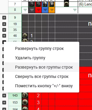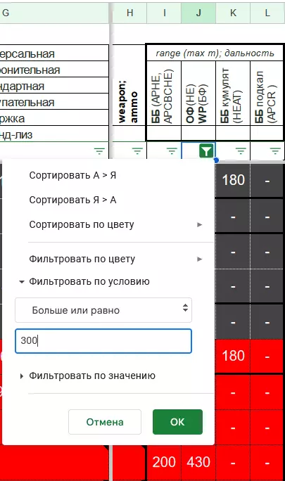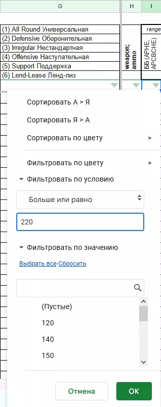 如何使用表格(示例1)。 示例1. 如何找到所有使用穿甲弹(APHE、APCBCHE)且射程大于等于220米,然后大于等于210米的单位 1. 在屏幕左侧右键点击呼出下拉菜单,选择【展开所有行组】