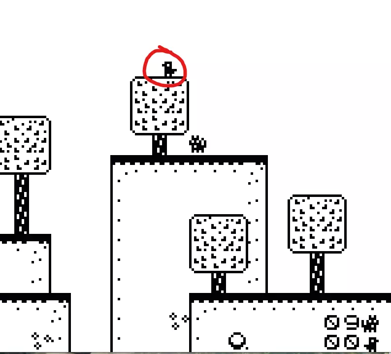 BOSS战斗: 小心鸟类向你发射的羽毛。鸟类还会进行俯冲攻击。要赶走鸟类,你需要跳上中间的弹跳板,并在鸟类的头部弹跳3次。 提示:你可以站在鸟类的头顶上跳跃,以完成3次攻击。