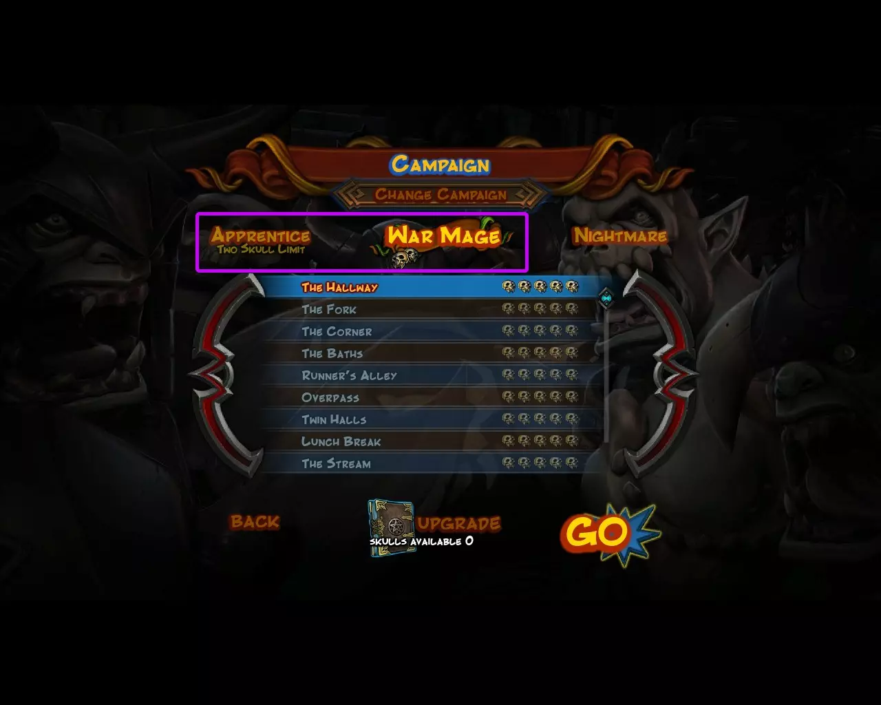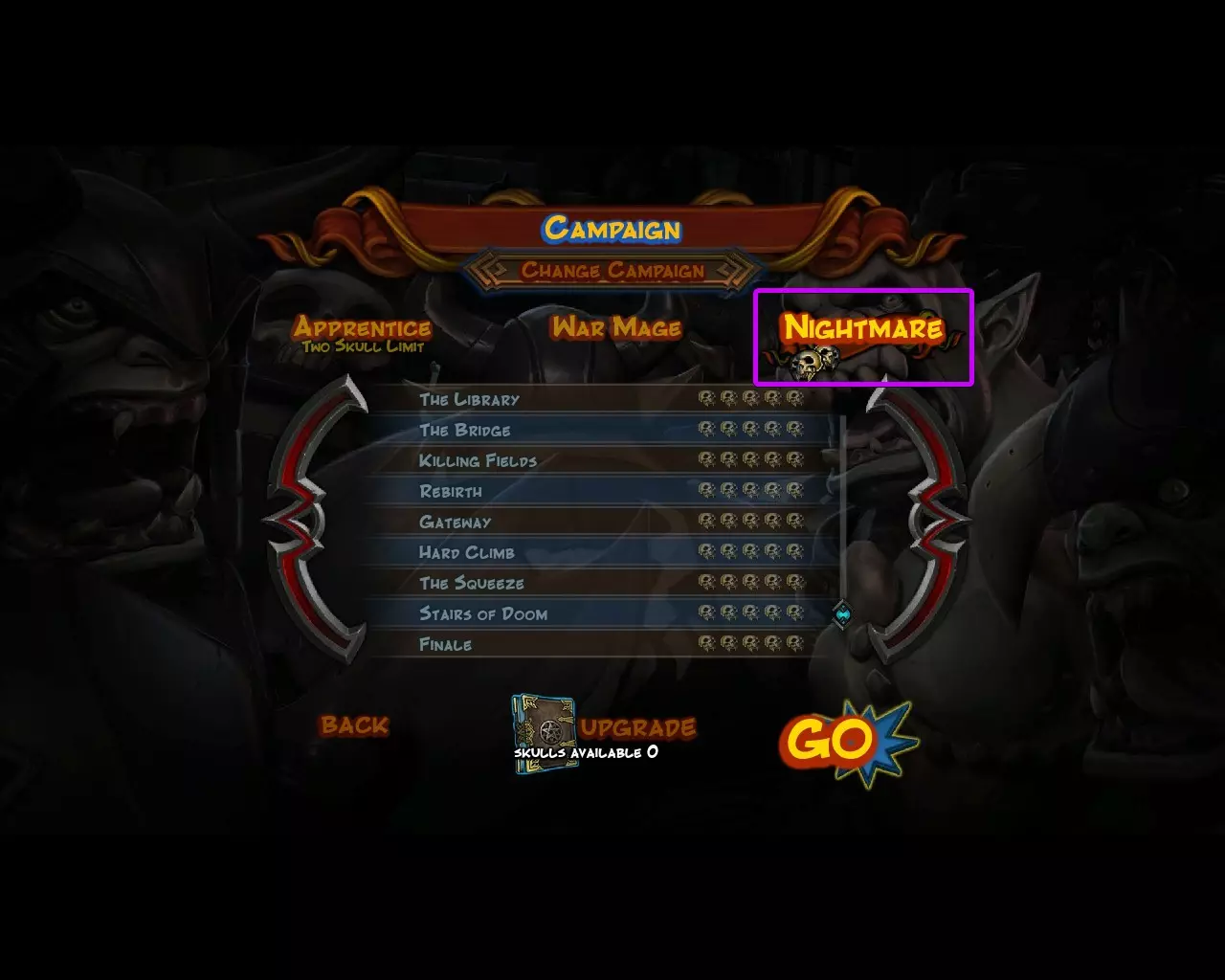 战争法师大师 完成第三章不可错过的成就,只需通关游戏中的所有关卡 游戏有三个难度等级:【学徒】(简单)、【战争法师】(普通)和【噩梦】(困难)。这些成就在【学徒】难度下即可获得,但建议在【战争法师】难度下游玩,因为两者差异不大(【学徒】难度下敌人生命值减少20%,造成的伤害也减少20%,仅此而已)