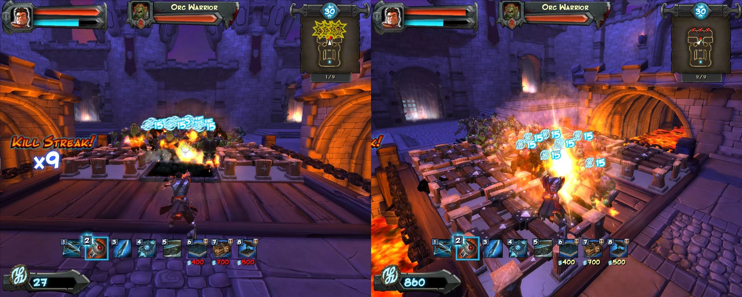 【噩梦】难度包含以下额外设定: - 第一波开始前无准备时间 - 每三波后无休息时间 - 波次间仅有3秒休息时间(原为12秒) - 敌人生命值+20且伤害+20%(与弓箭手/圣骑士战斗时不生效) - 玩家生命值-50% - 裂隙点数-50% - 所有兽人拥有护盾(意味着大多数陷阱无法将其秒杀) - 被击杀的弓箭手/圣骑士不会在每3波后复活 好消息是,你无需以5 skulls通关所有关卡——只需通关游戏即可。 查看【Defender】【Keepmaster】和【Master War Mage】成就,你可以在其中找到各种建议和帮助。另外,不妨查看其他玩家的攻略,你或许能学到一些有趣的战术和布局。Kill Streak