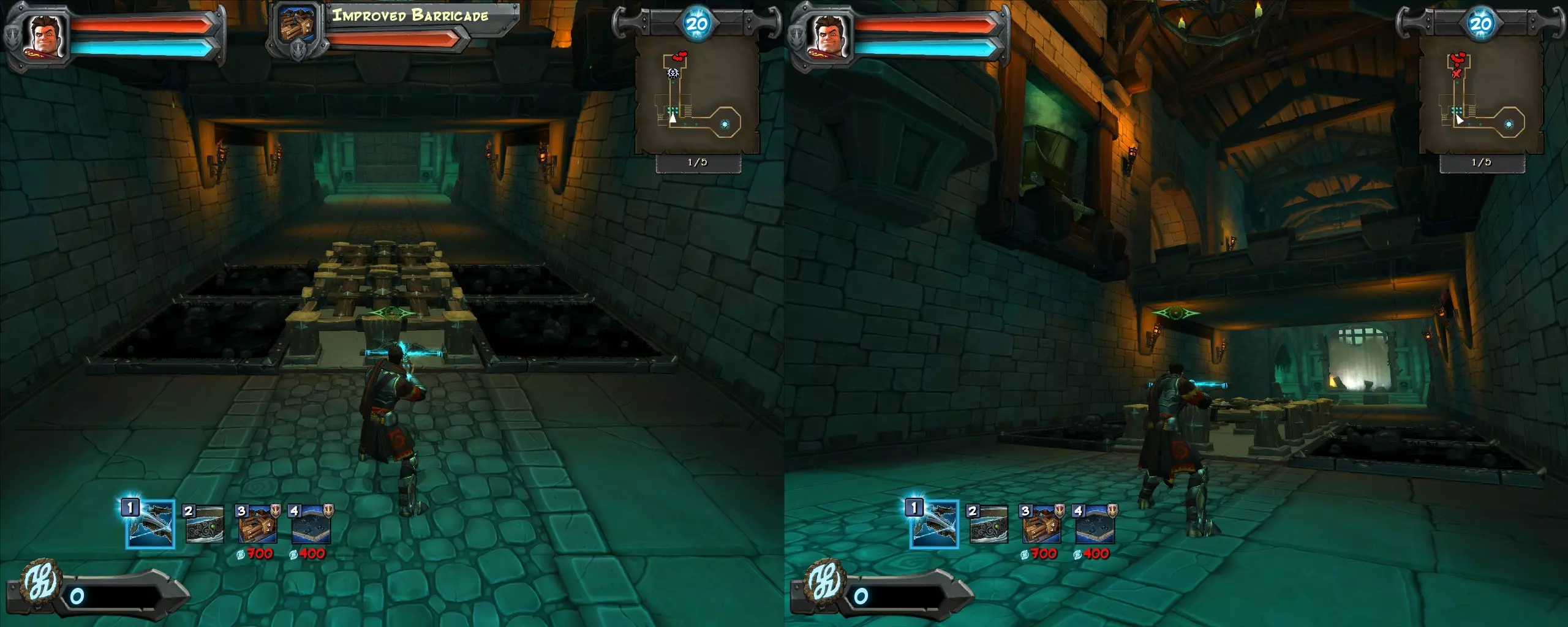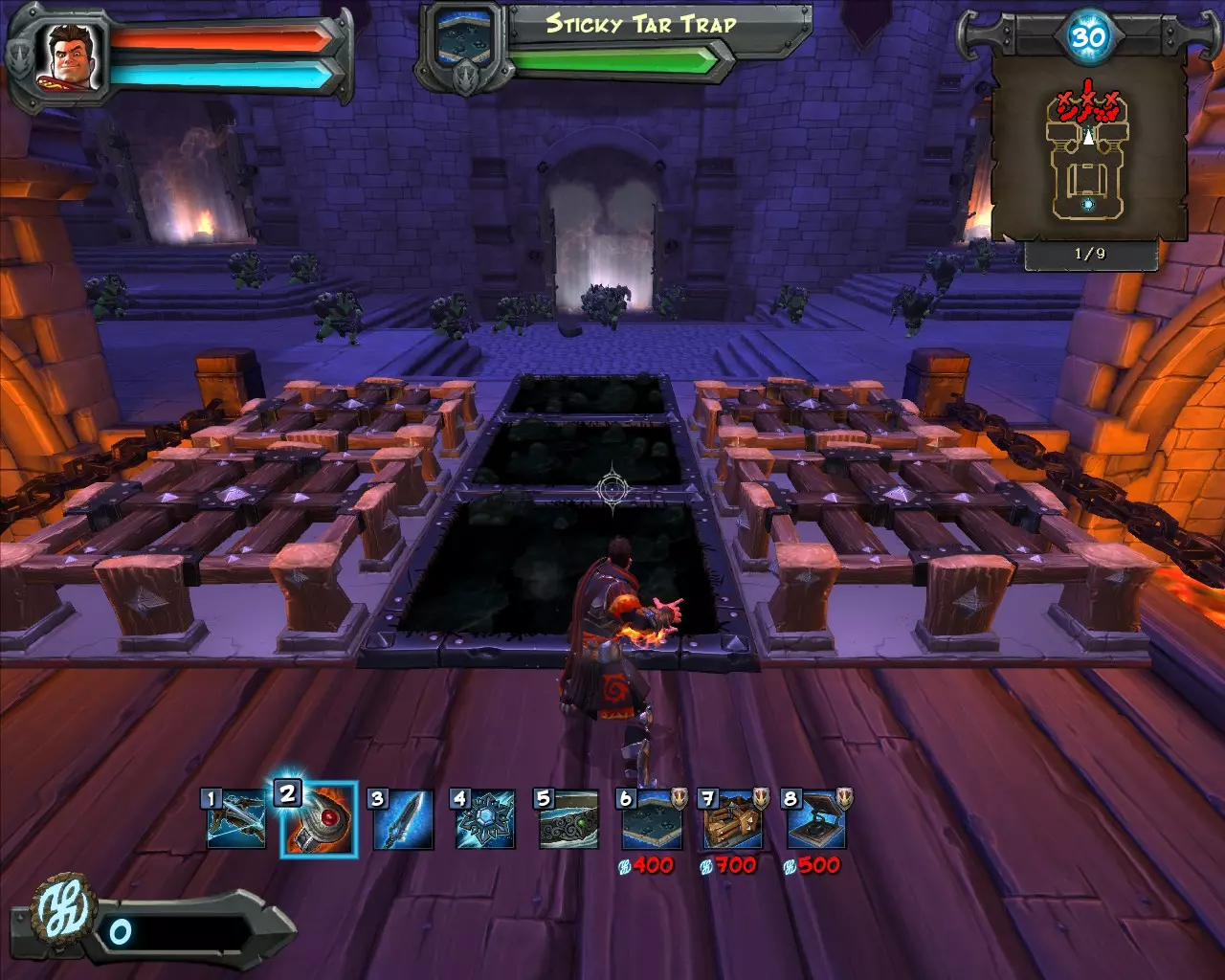 现在在楼梯附近放置【路障】,也可以选择性地放置几个【焦油陷阱】。无需完全照搬位置,不必过于精确。
