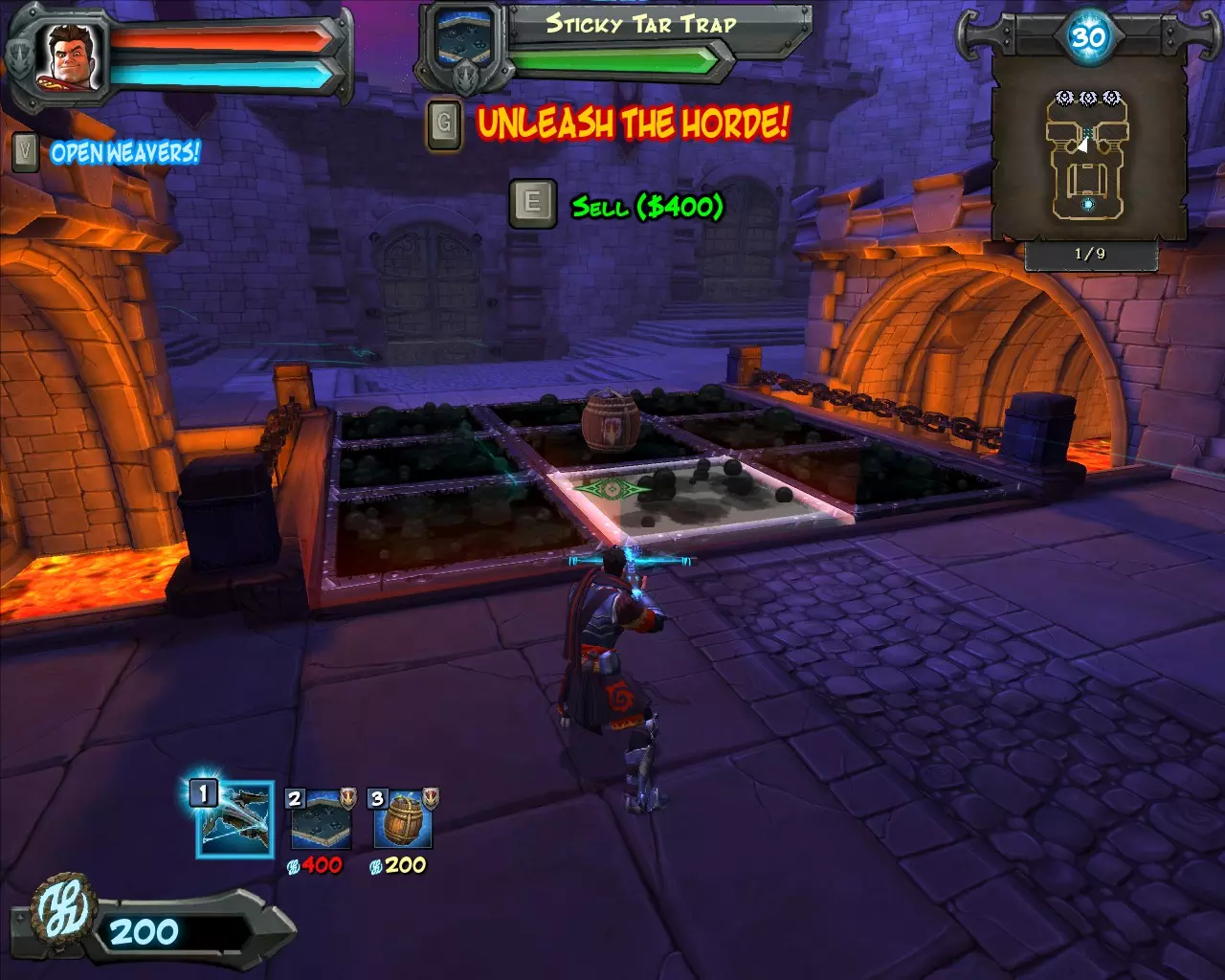 Great Balls of Fire! 在一个关卡中获得300次火球击杀。你可以在【瓶颈】关卡中获取该成就,选择【路障】、【焦油】、【火焰护腕】(可选【 blade staff】来击杀哥布林,【冰之护身符】来击杀食人魔)。 初始配置如下: