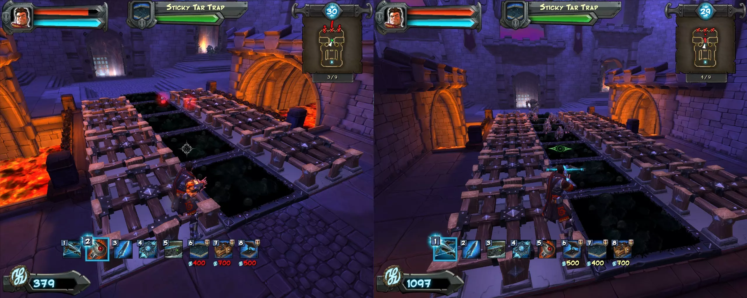 继续完善你的杀戮间,添加更多【重击者】和【焦油陷阱】,在墙上放置【推击陷阱】,周围设置【路障】。另外,在第4波之前购买【涂油陷阱齿轮】升级。
