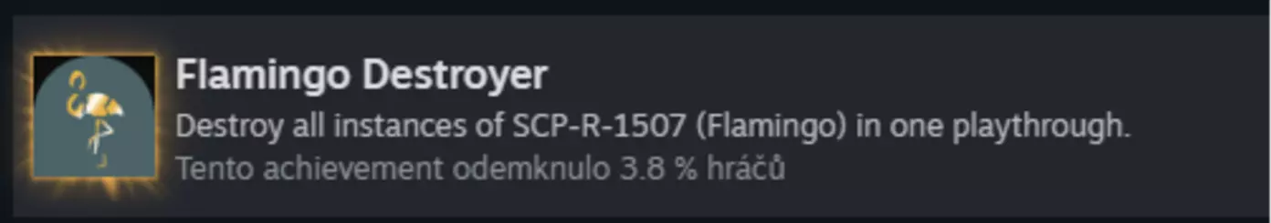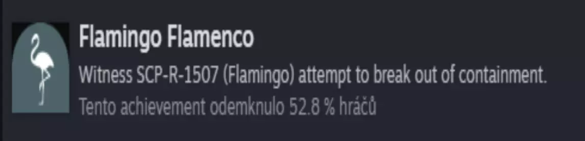 次要成就 游戏中共有22个成就。其中14个会在流程中自动获得。这里我会描述7个容易被忽略的成就(第8个与火焰有关)。 请不要忘记【Thorough】(你必须完成整个914任务才能达成) 【Flamingo Flamenco】 成为SCP-R-1507试图逃离牢房的目击者。(如果你在流程中反复回到SCP-R-1507的牢房,其安全系统会逐渐被破坏。最终会发生逃跑尝试,触发牢房封锁——此时你将获得该成就。)