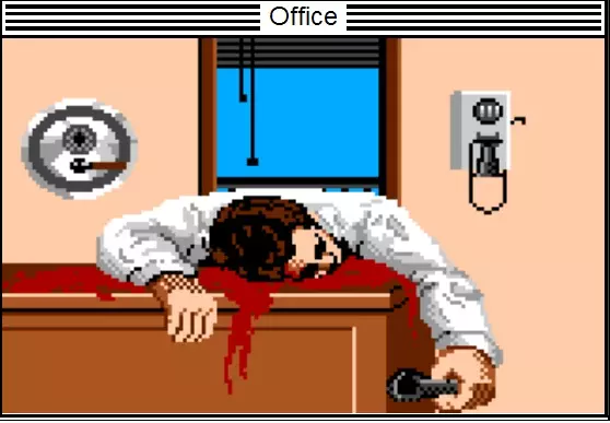 布局 入口 | 布罗迪医生办公室 艾斯的办公室 上楼,用你的枪对着门操作,射击另一边的黑影,然后用在平房找到的钥匙操作办公室门。打开文件柜并检查里面的卡片,获取故事片段。 回到楼下,这次进入走廊。用在平房找到的钥匙操作布罗迪医生的办公室门以打开它。进入后,用你的枪操作文件柜来研究解毒剂,并获得游戏后期有用的知识……或者直接用注射器操作标有“Bisodiumitis”的药瓶来装满它,然后用注射器给自己注射,以恢复一些记忆并避免变成植物人。之后用注射器操作硫喷妥钠药瓶,以备后用。回到乔的酒吧。 乔的酒吧 - 第二部分 33-24-36