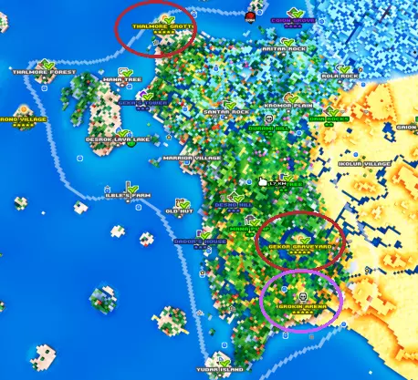 竞技场(Arena)或地图特定的试炼场就像是一个标志,表明你已经清理完那张地图了,简单来说,这也相当于你已经通关了《魔方世界》,因为无论我们切换到哪张地图,都像是重新开始,做着和之前一样的事,寻找新的物品。清理竞技场也能获得值得尝试的奖励,掉落的物品包括随机的金色武器和盔甲套装,而且这些金色装备的属性肯定比普通装备更好。判断地图上竞技场情况的简单方法是,放大地图寻找此类建筑。
