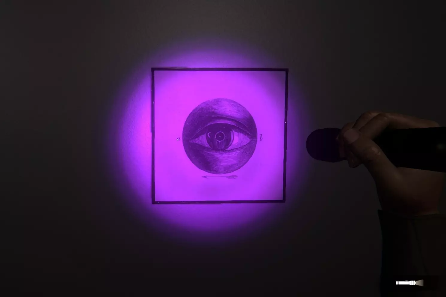 3. 左侧的灭火器消失了,若用紫外线手电筒照射该位置,就能看到这个可爱的玩具。