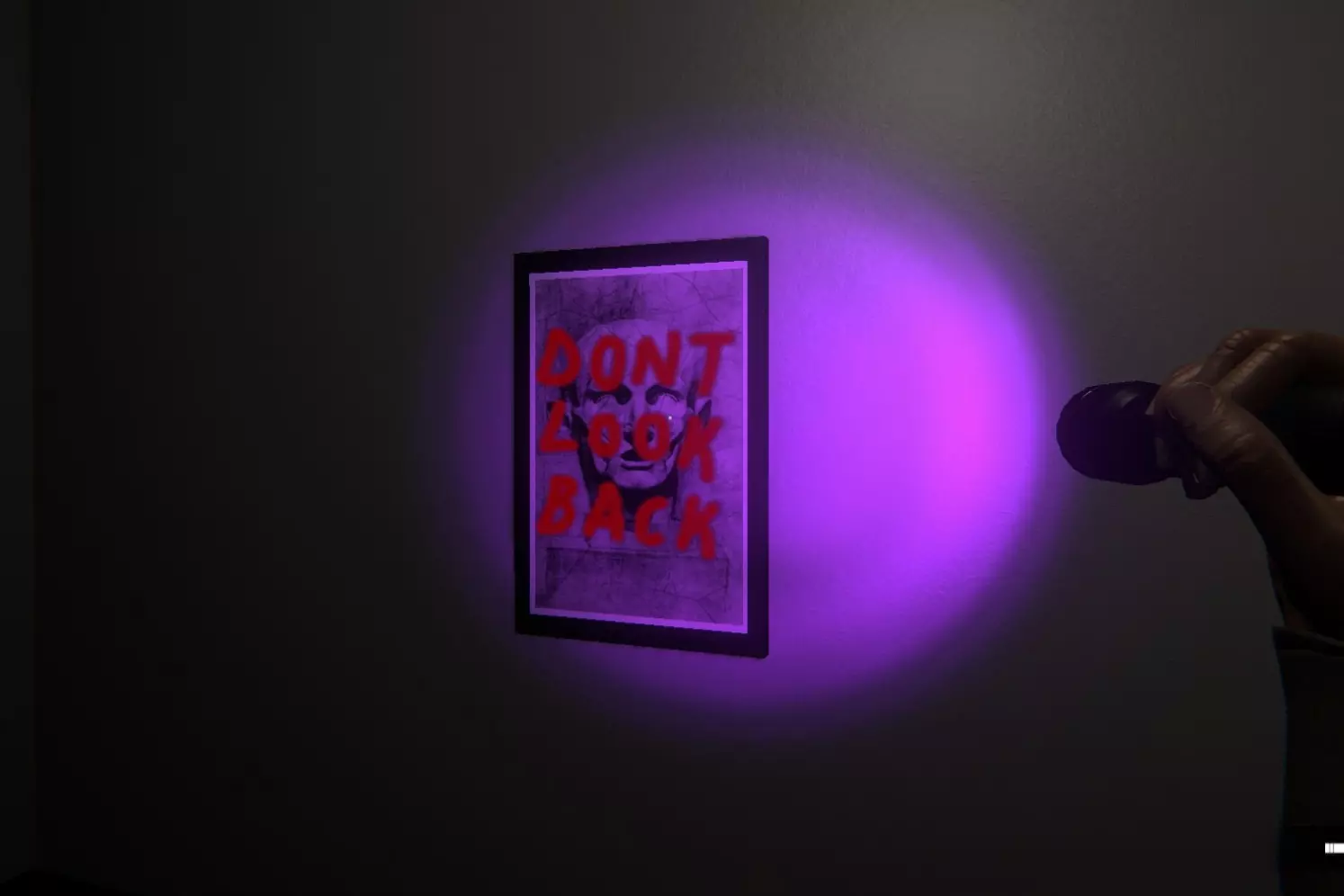 3. 画作上的文字(仅在紫外线灯照射下可见)。随后出现惊吓画面