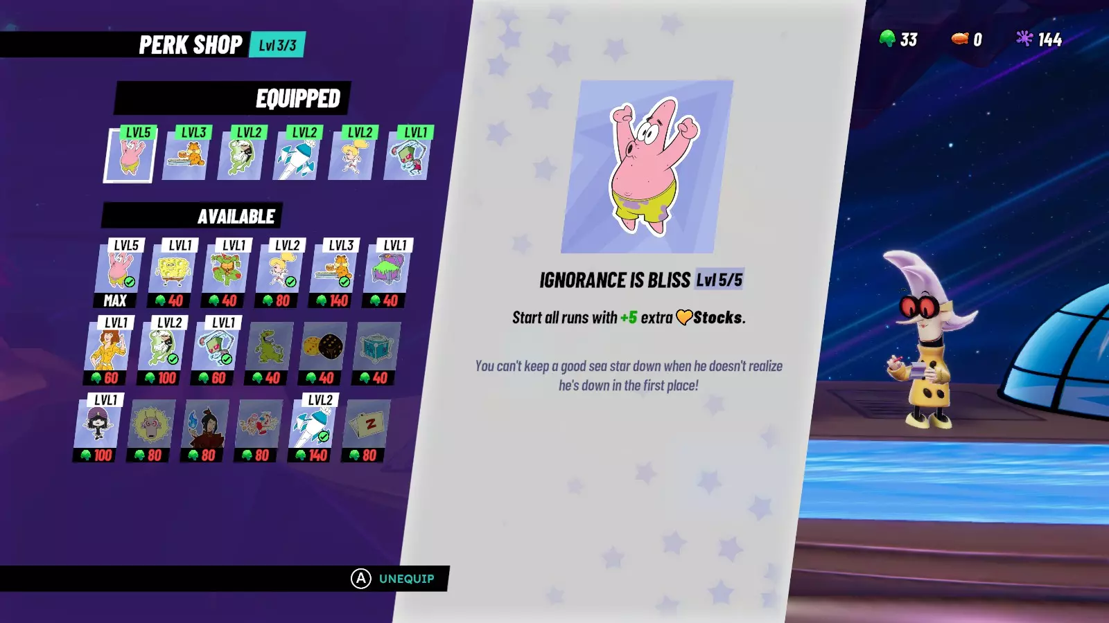 在枢纽世界中,你可以从诺拉·韦克曼处购买永久增益,以便在战役流程中装备使用。不过,你可以通过消耗冒险中收集到的绿色粘液来升级这些增益,使其效果更强。