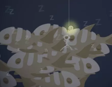 你需要为你的鱼竿升级【大型船只】、【火箭】、【灯泡】、【炸弹】和【引爆器】。 骨鱼正在睡觉,引爆炸弹来唤醒它们。 15. Doing Good