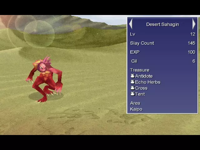 全知全能 你完成了整个怪物图鉴。 在列出完整的怪物图鉴之前,我需要提醒你游戏中一些重要且极易错过的敌人。由于游戏中存在无法重访的区域,以及会自毁的敌人,你需要确保及时填充怪物图鉴并击败所有敌人。 名称/位置:将军 怪物图鉴条目:剧情 - 在凯波,将莉迪亚带到旅馆后出现。确保先击败将军,再攻击其他敌人。如果先杀死他的士兵,他就会逃跑。建议到达沙漠后存档,以确保获得该条目。
