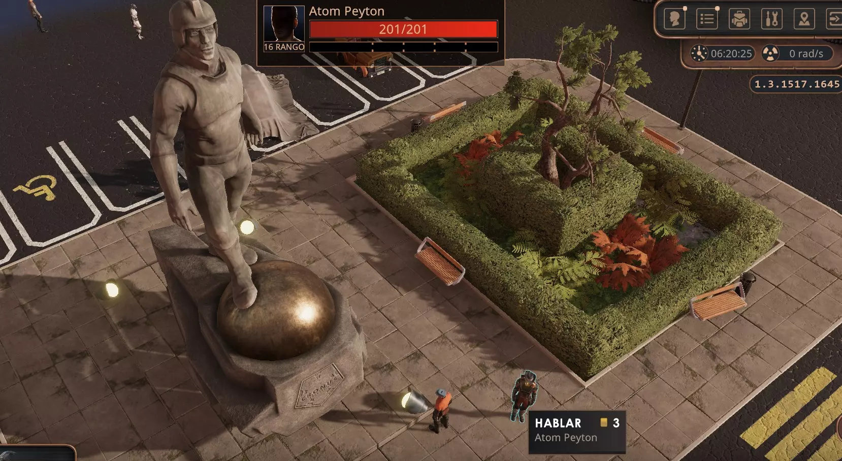 交易系统很简单,点击【=】按钮可以用你的钱来平衡交易,要是背包里东西太多,可以使用下方的筛选器。 你的魅力、影响力等属性会决定购买物品时的价格。 在这个例子中,这本漫画价值60,但我只花了58就买到了。 一旦到达电梯外面,我们就能去完成另一个成就。 我们有24小时的时间来完成教程并获取前往纳什维尔的任务,游戏内时间比现实时间稍快一些,不用太担心,你完全可以在一两个小时内完成所有内容。一旦接到任务,你就可以自由探索康科迪亚,直到你准备好离开为止。但现在,先保存游戏,然后点击界面右上角的时钟,就在辐射符号的左边。这是等待界面,我们需要等待直到时间结束。你可以将时间滑块拖到最右边,这样就是24小时。