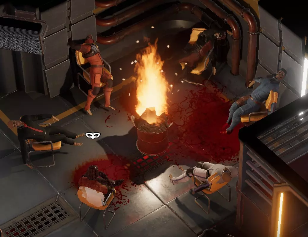 无人归来 其中两人在办公室,另一人在住宅区。 要杀死住宅区的那个,我必须在使用电梯前潜入,到达后迅速对他发动攻击,否则他就会逃离这里,但后来我发现这家伙会去-1层的损坏电梯那里。 哦对了,因为我杀了人,所以获得了成就: