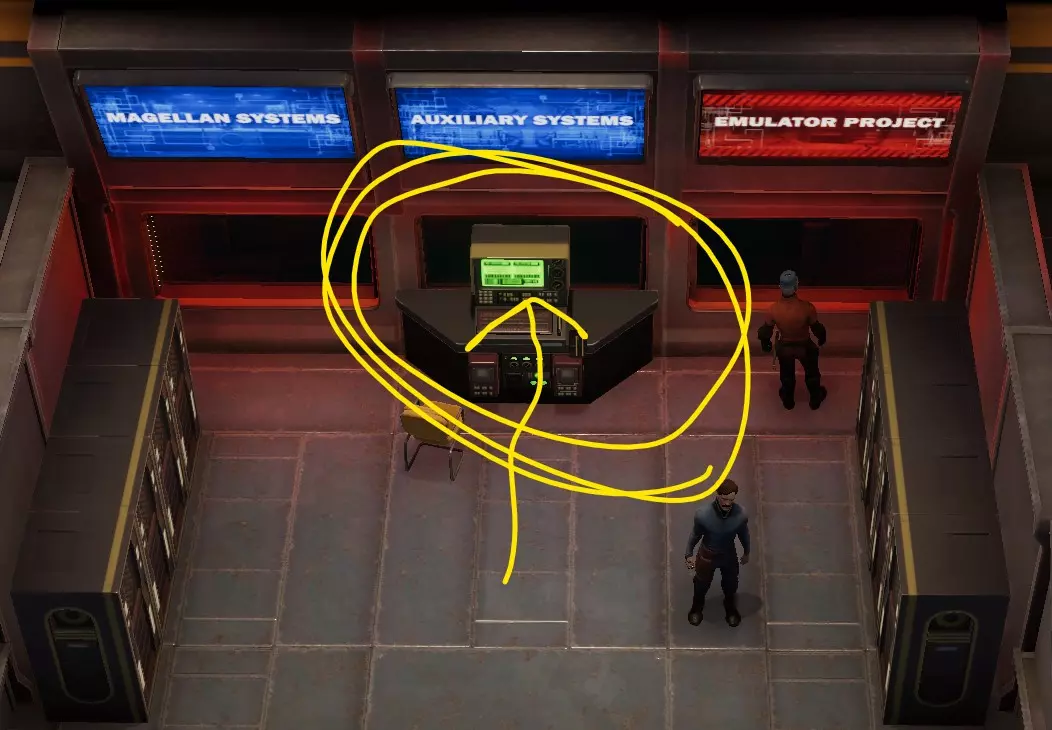 洗手间里总有时间跳支小舞。 小咖啡馆里有个人会给你一个任务和一个新探索地点的坐标。 另一边有个终端室,在瑞克的小终端上有一个文字冒险游戏,挺有意思的,如果你能通关,会获得一些经验值。 密涅瓦任务的解决方法:在5E终端输入密码,选择【远程】选项连接到19768终端,阅读重要信息。这里有两个选项:安装新控制器或销毁协议。 在那附近是金斯利的办公室,和他交谈会得到几个有趣的探索地点坐标,包括麦哲伦反应堆和其他地方。负7层:反应堆 与蒙哥马利交谈后,我们终于可以继续推进【模拟器计划】的主线任务了。