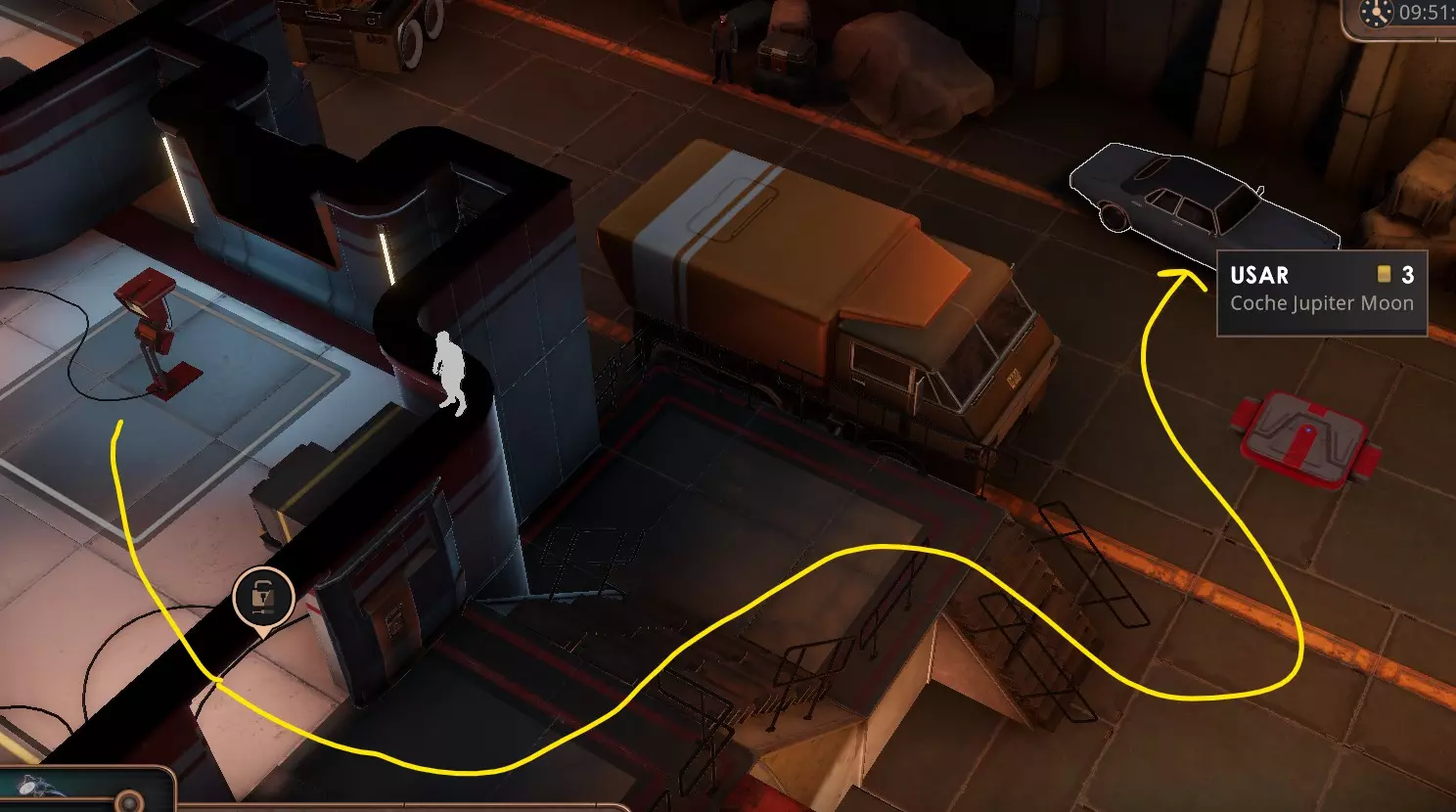 一切都将回到原点。 拥有140点犯罪值后,你可以持续使用潜行技能来避免战斗。 这个区域的导航有些困难,但你只需点击想去的地方,角色就会自动开始走向那里。 你的目标是靠近3号门的一处下行通道,你可以通过2号门附近的浴室进入,该位置在地图的东南部。