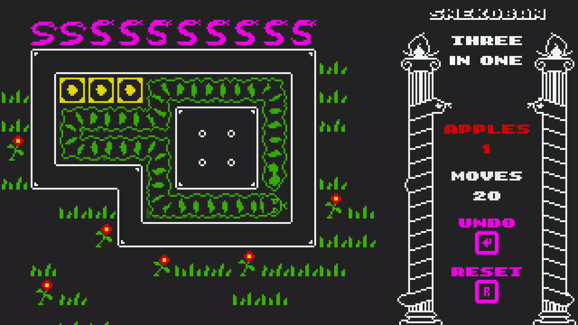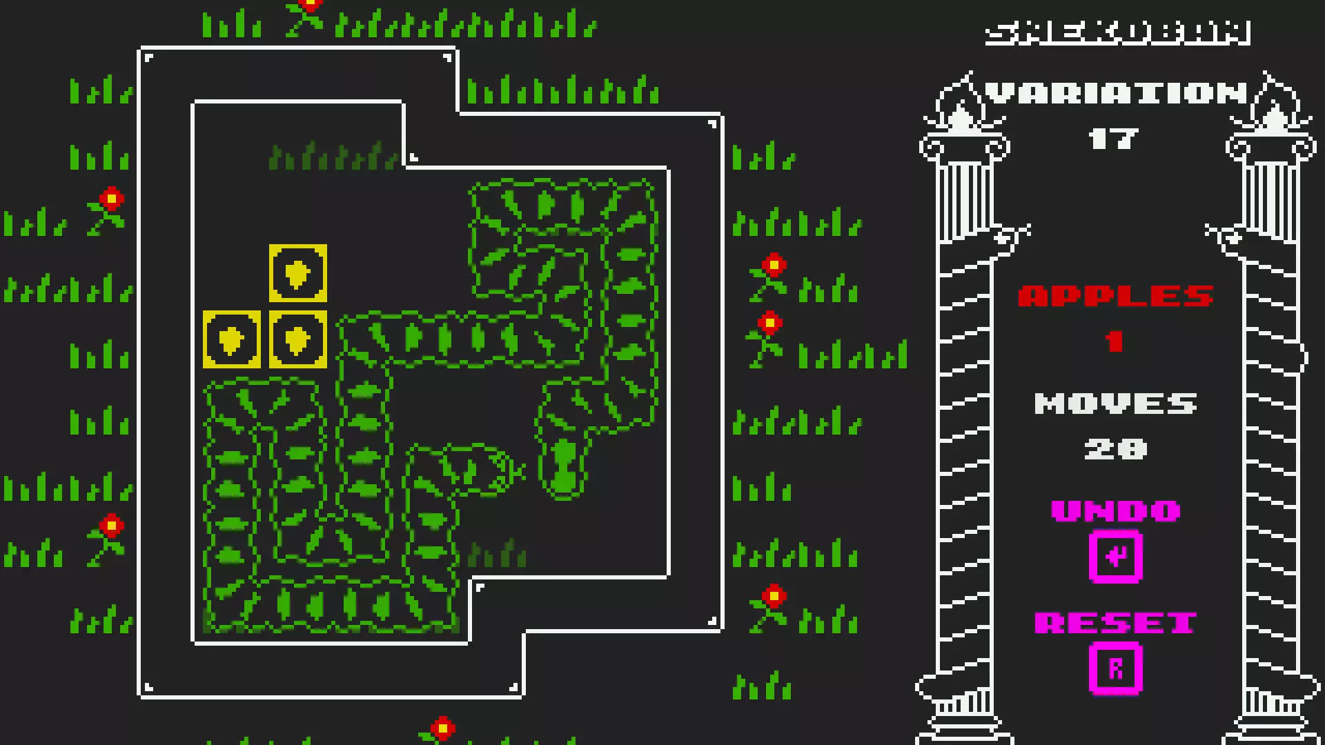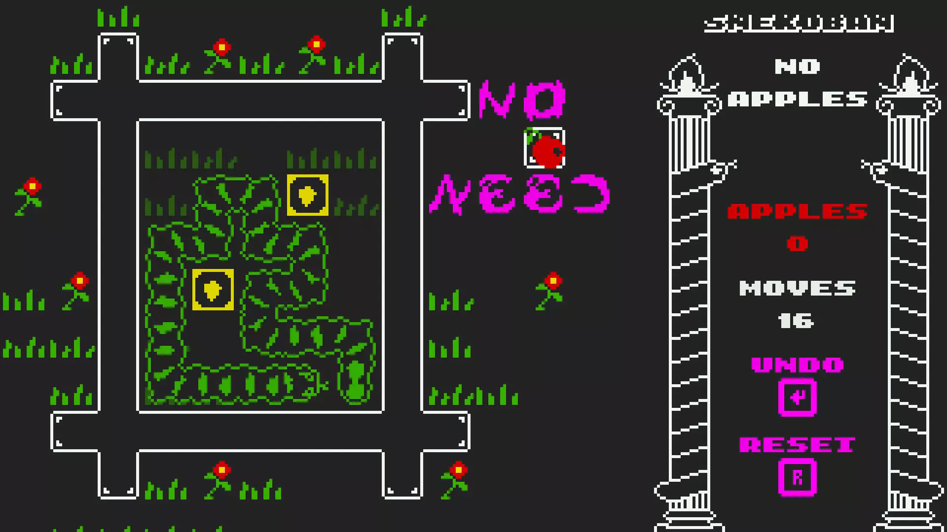 图文攻略 简介 小蛇 :) 按照每个图文区块的指引来通关。 首先要完成三个没有苹果的关卡,标记为【无苹果】。 另外,在某个关卡中闲置15分钟后再完成该关卡。 所有关卡都有名称,可使用Ctrl+F轻松查找。 移动方式: U = 上 D = 下 L = 左 R = 右 游戏内: Enter = 撤销 R = 重试 关卡 食蛇者 - UUULL LLDDD DRRRR