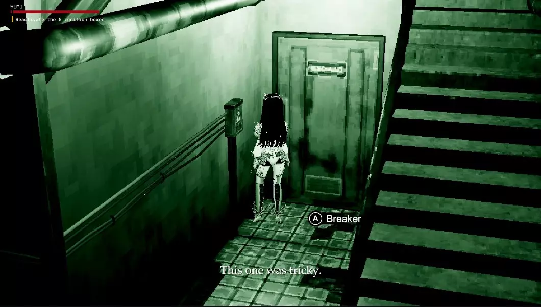 回到之前的房间,找到左侧有一组楼梯的房间,第四个断路器就在那里。