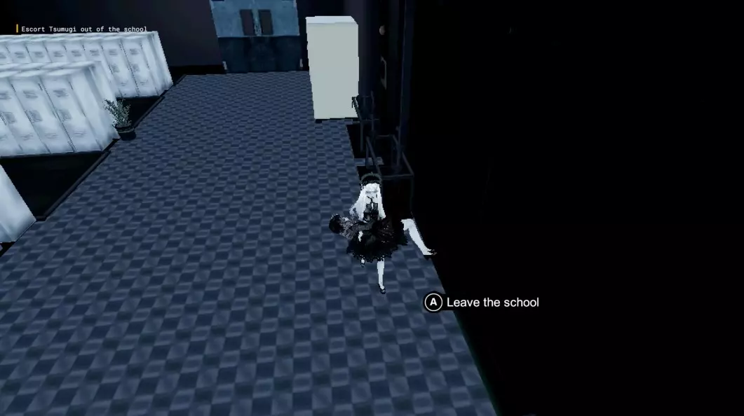 这里是解锁【Good Girl】和【Principal Resetti】成就的地方。 对话结束后,你会出现在一间教室里,最终纱织会让你去屋顶见她。操控纱织,穿过门来到楼梯,上楼直到遇到一群孩子。与孩子们的场景结束后,你将继续操控美绪。由于不知道纱织的情况,你需要找到她。在屋顶绕着建筑物走,穿过门,下楼梯。一直走到2号走廊,然后进入2B教室。 在教室里,你会发现纱织浑身是血地躺在地上。抱起她并离开教室。一路下楼梯,直到看到左侧有一扇门,那是通往更衣室的门。在有自动售货机的更衣室一侧,你会找到出口。和纱织一起离开学校。