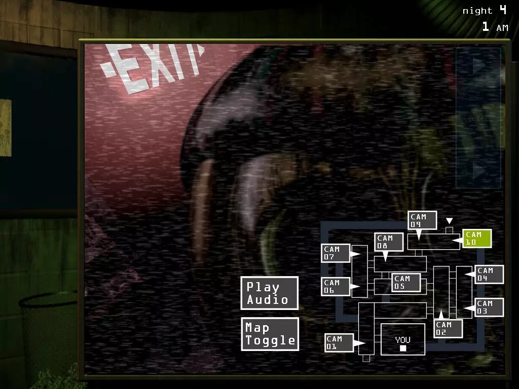 情况是这样的,如果没能及时查看4号摄像头,这个东西就会关闭它,发出讨厌的声音,还会把脸贴在办公室的玻璃上。我没能阻止这种情况发生,反应速度不足以在1秒内看清并切换摄像头。它不会吓人。你甚至会因为那标志性的声音而……