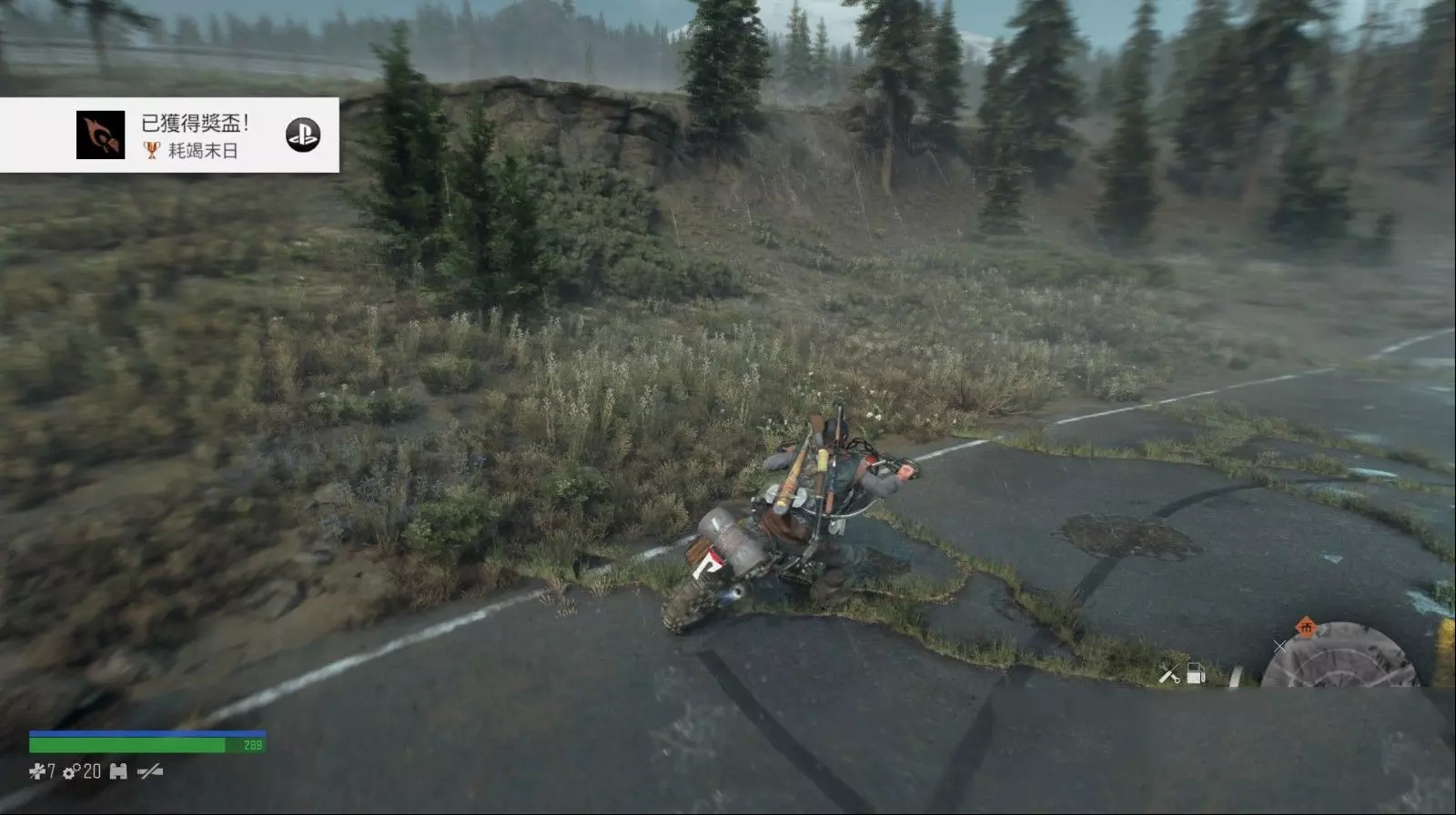 燃料的获取则相对简单,玩家可以通过场景中的燃料罐或直接前往加油站补充。在加油站补充燃料的方法很简单,找到油站即可。玩家使用机车移动或快速移动时会消耗燃料。由于在本作中玩家能使用的载具只有一个,因此燃料基本处于长期消耗状态。省油的方法不多,尽量避免走上坡以及在上坡起步可以一定程度上节省燃料,另外沿着斜坡往下行驶时,即便松开油门机车也能继续行驶,借此也能节省燃料。值得一提的是,每个油罐和加油站都能无视玩家油罐大小及剩余量直接将燃料补满。油罐可在所有营地和NERO检查哨找到,玩家路过且燃料短缺时不妨进去搜刮一下。营地的信赖度提升到一定程度后,玩家就可以在柯普兰营地和铁汉麦克营地处花费币升级自己的机车了。笔者推荐优先选择的升级为机车速度、油箱以及存放空间。前两个很好理解,提升存放空间可以让玩家在商人处购买一个弹药箱,在机车处使用可以瞬间回满武器的弹药,在对付敌人数量众多的暴走潮时可以提高玩家的续航能力。 成就要点 2. 在正确的地方搜刮