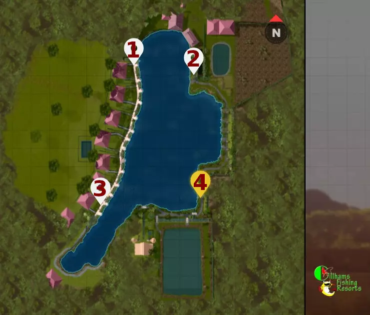 > 庄园农场 < 巨型主湖 > 遗忘 > 矮胖 - 焊接点 - 布罗迪的镜子 - 恶魔岛 > 完美公共区 - 福吉区 - 小布鲁特斯 - 里加登 - 杆位 > 裸斑公共区 - Z.S. - 北方鳞鱼区 - 科氏角 > 小黑眼 - 双胞胎 - .DLC. > 迪伦湖 < > 克尔湖 < > 塔伦渔场 < > 杰齐奥罗贝斯提湖 < > 威廉姆斯湖 < > 巨型公路湖 < 乌龟角 > 死神 - SAS - 罗恩区 - 帽子至上 - 特洛伊的大块头 - 无名公共区 - 胡须区 - > 阿诺德湖 < > 伊基托斯泻湖 < 秘鲁 > 塞米诺尔湖 < 美国 > 乔丹湖 < > 雷兹伯里1号南部 < > 吉勒姆钓鱼度假村 < > 世界之湖 < 热点区域 - 钓点 > 博尔德湖 <