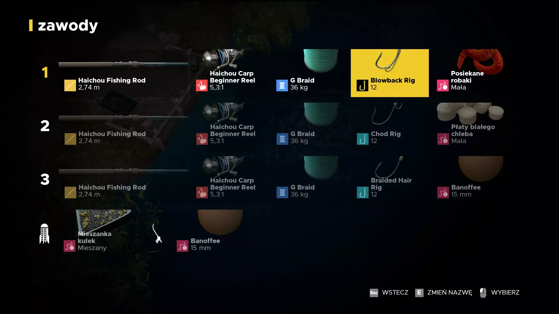 锦标赛 鲈鱼 鲤鱼 - H#2 + 漂浮老虎坚果 + 什锦水果? + active-8 浮饵 D 比赛 - H#12 + 切碎的虫子 + 白面包片 + 香蕉太妃酱 - H#12 + 漂浮老虎坚果 + 什锦水果 + active-8 浮饵