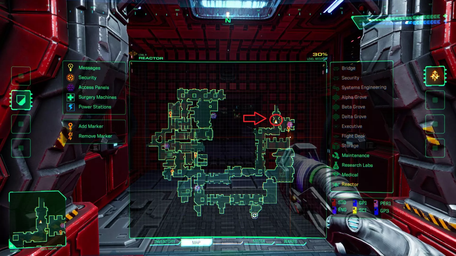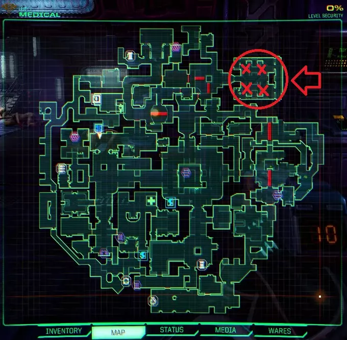 黑客?你还不太懂她! 摧毁每个赛博空间关卡中的赛博核心 [11/11] 位置 医疗区 - 终端1(正东方) - 终端2(北方) 研究实验室 - 终端1(东南方) - 终端2(正北方) 维修区 - 终端(东南方) 飞行甲板 - 终端(东北方) 行政区 - 终端(西北方 - 靠近中心) 工程区 - 终端(东南方) 安保区 - 终端(南方) 舰桥区 - SHODAN的终端(大致中心位置) 反应堆区 - 终端(东方) Off The Grid [已完成]