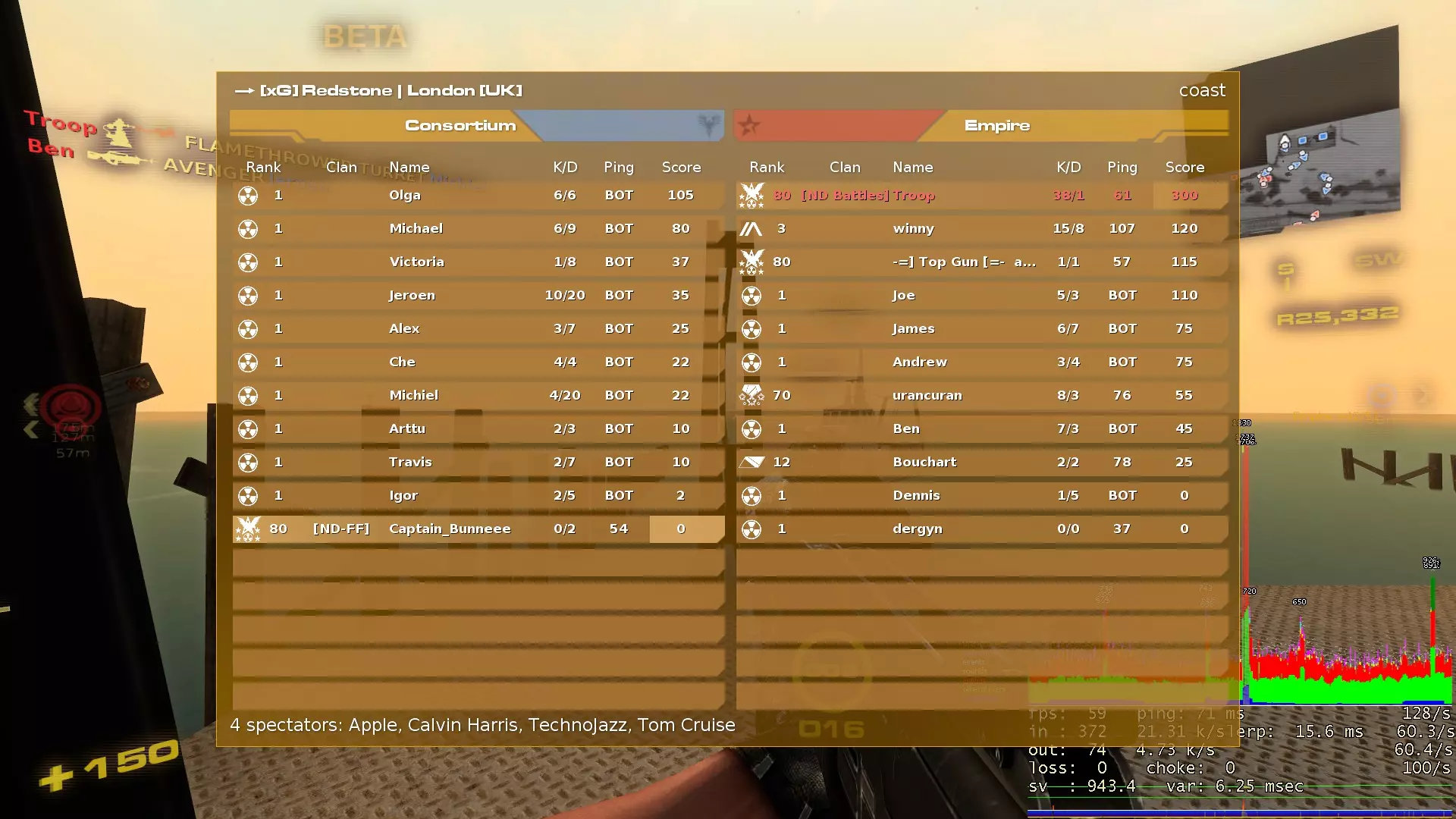 我们有一个服务器是人类玩家,另一个则只有机器人。在这种情况下,我其中一个服务器出现了丢包问题,加上奇怪的默认配置,让我玩得很艰难。而且我收到一条评论说我的【lerp】值太高了。